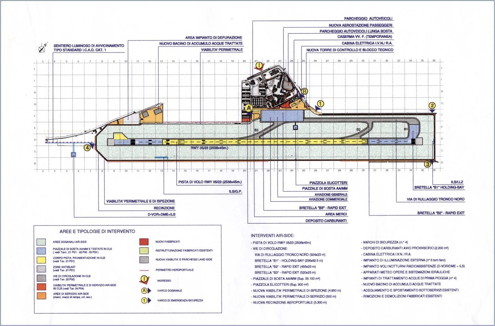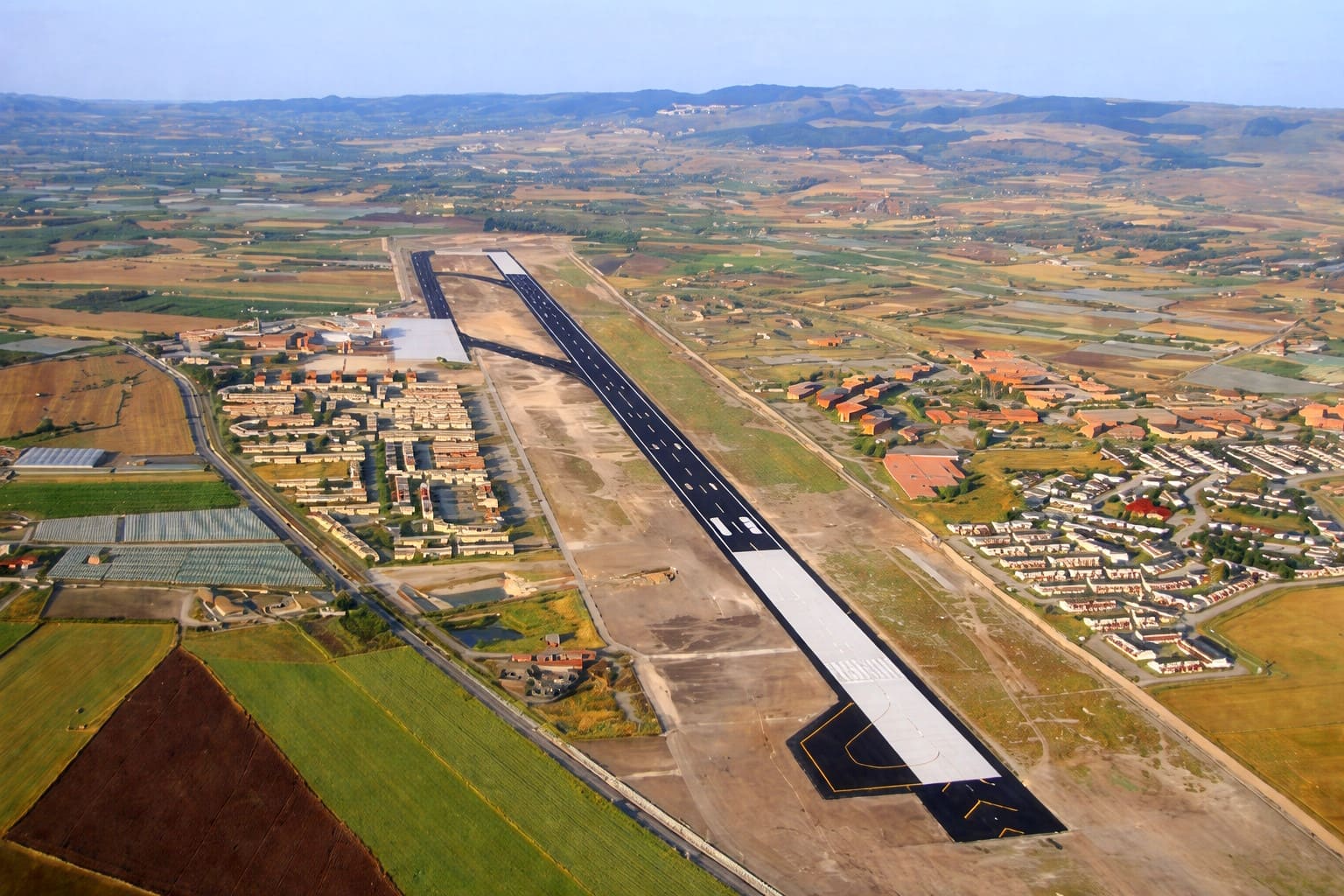 Plan del Aeropuerto de Comiso con su nueva pista de 2460m. El trabajo de renovación y reactivación del aeropuerto empezó en 2004 y fue completada durante el invierno en el 2008. La nueva pista tiene 2460m de longitud y 60 m de anchura (45m de más y dos zonas de emergencia de 7,5 m cada una) y tiene 3 terminales (B1,B2 y B3) que conectan con la parada de taxi la cual tiene 38m de ancho. El An ILS (Instrument Landing System) ha sido instalado y ha sido construida una nueva torre de control de 19m de altura.