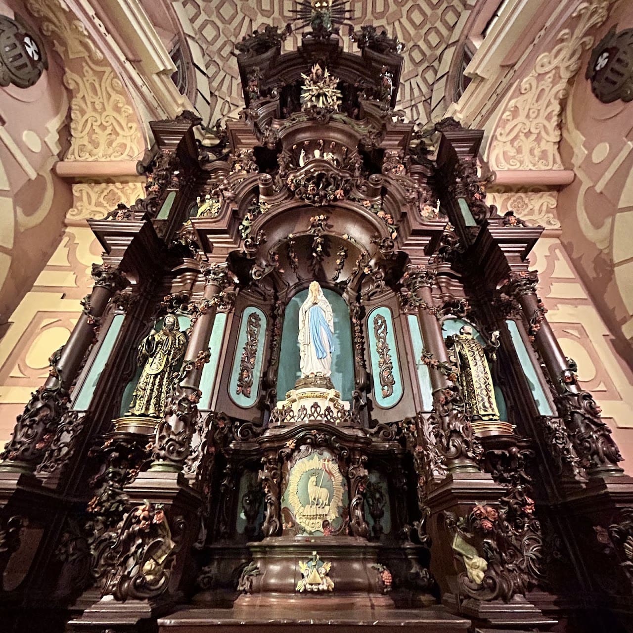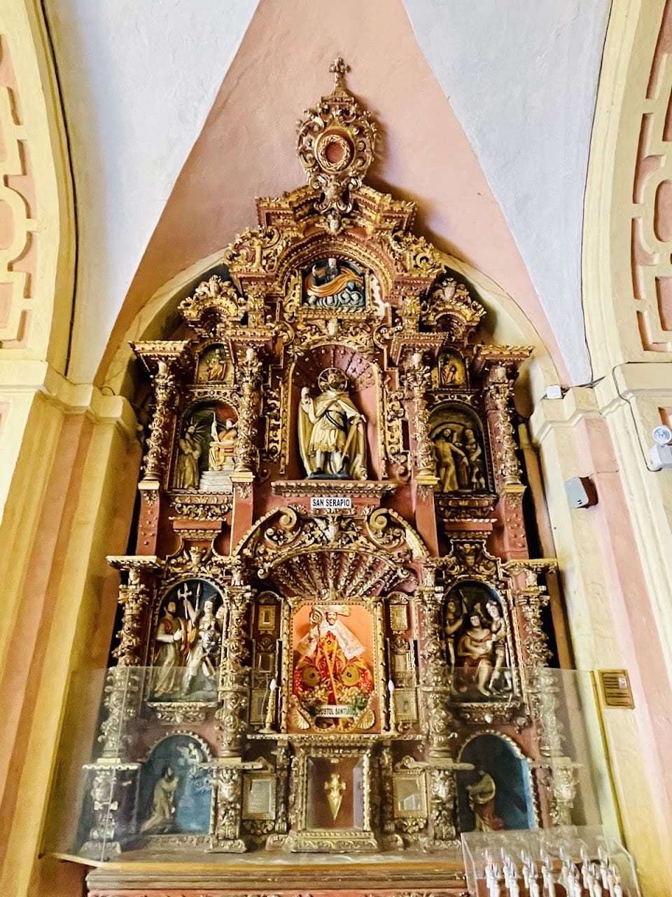 El interior alberga importantes obras del arte virreinal peruano: