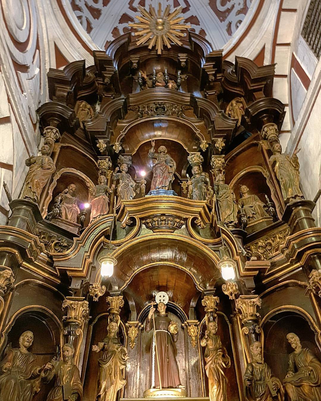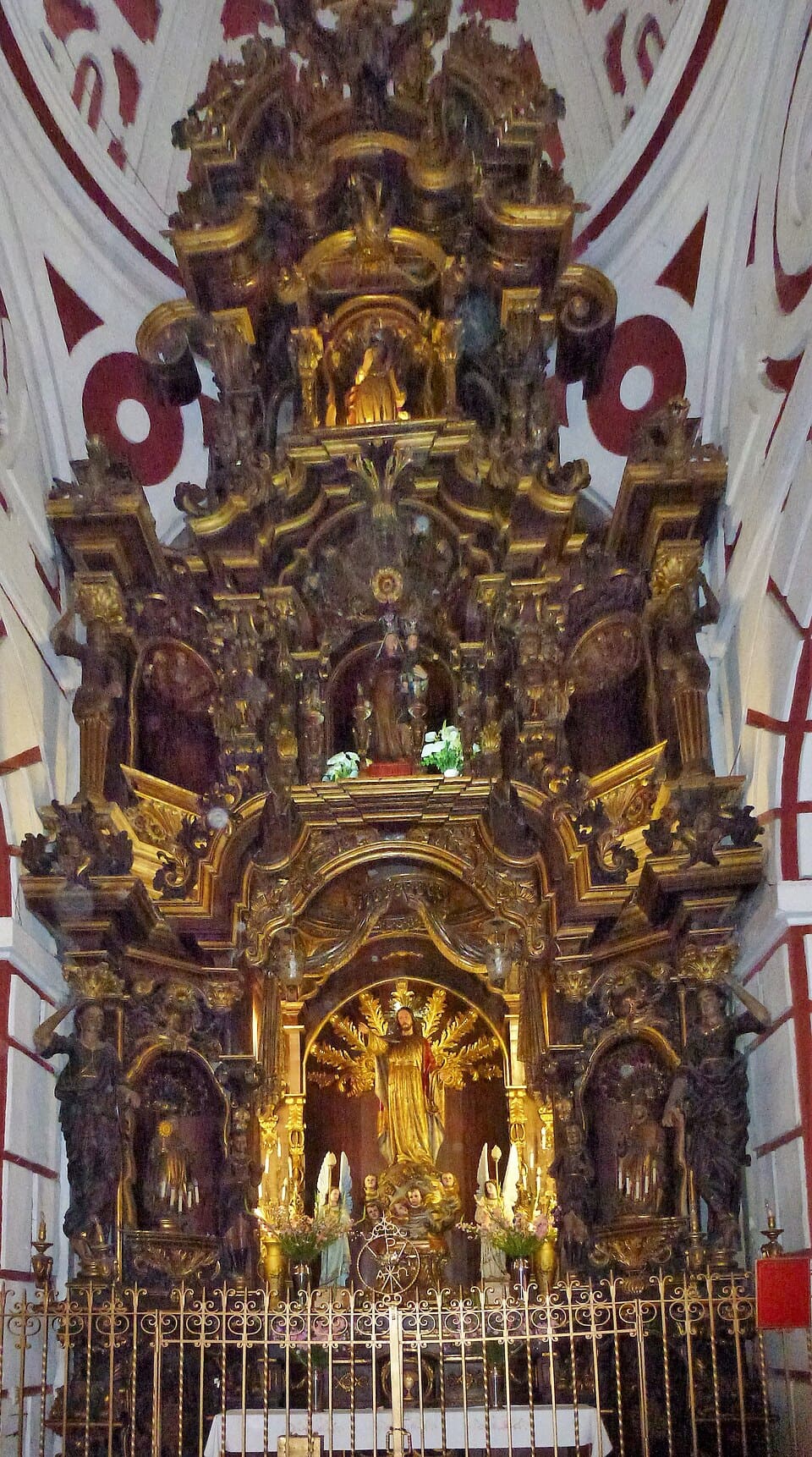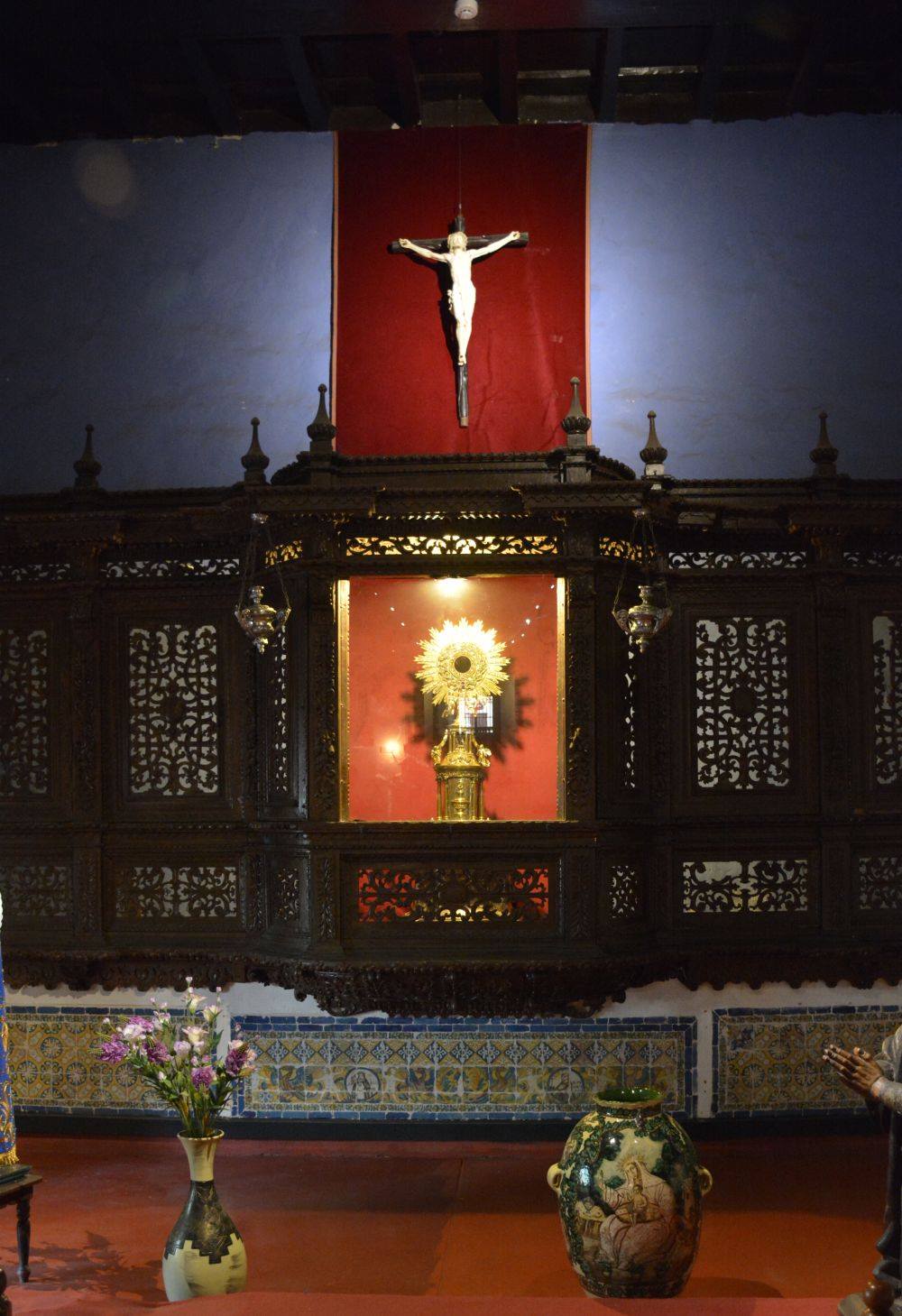 Retablo mayor completamente tallado en madera.