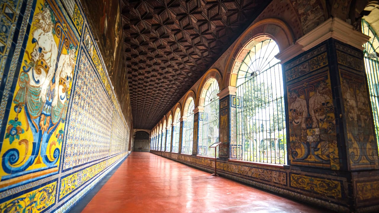 Claustros decorados con azulejos sevillanos del siglo XVII.