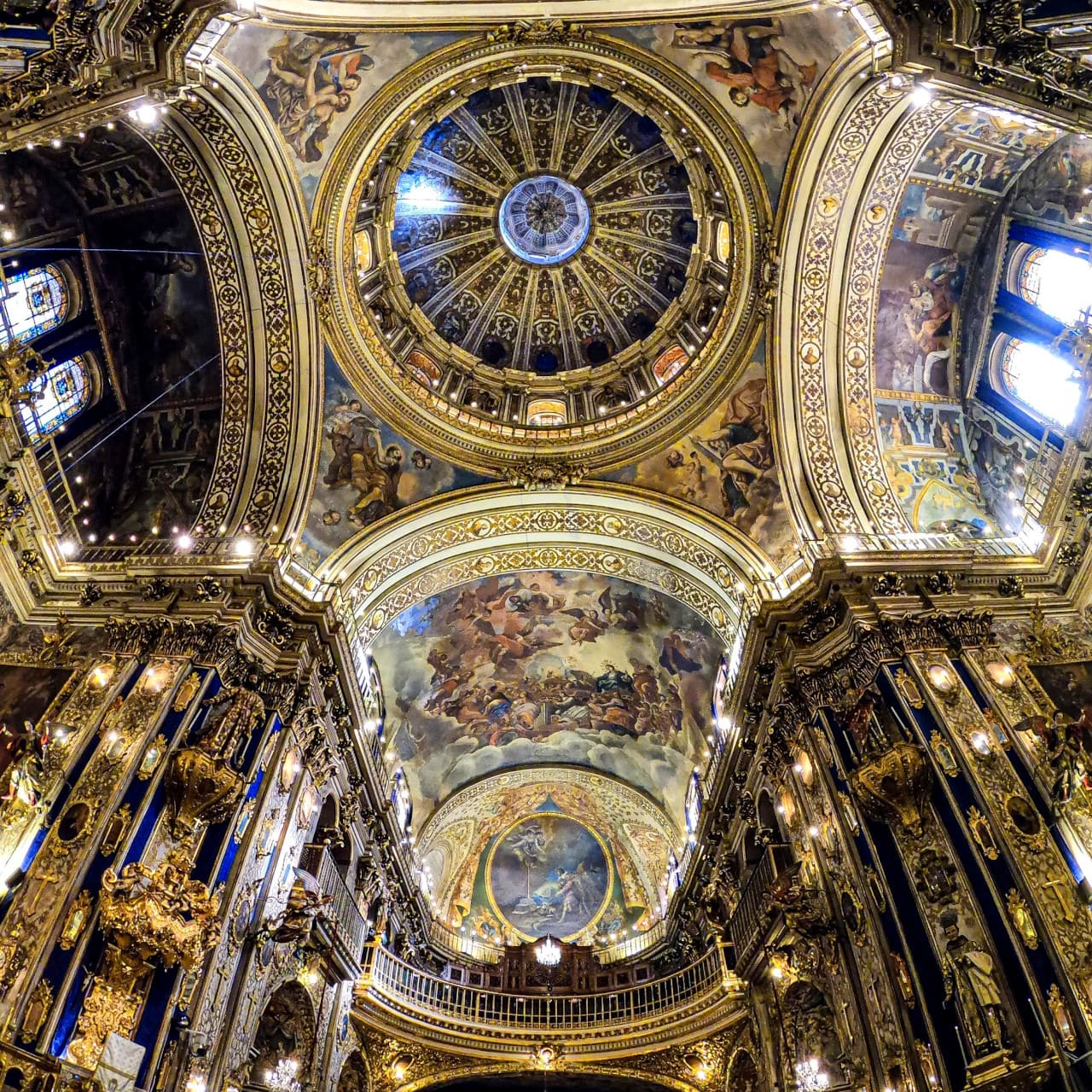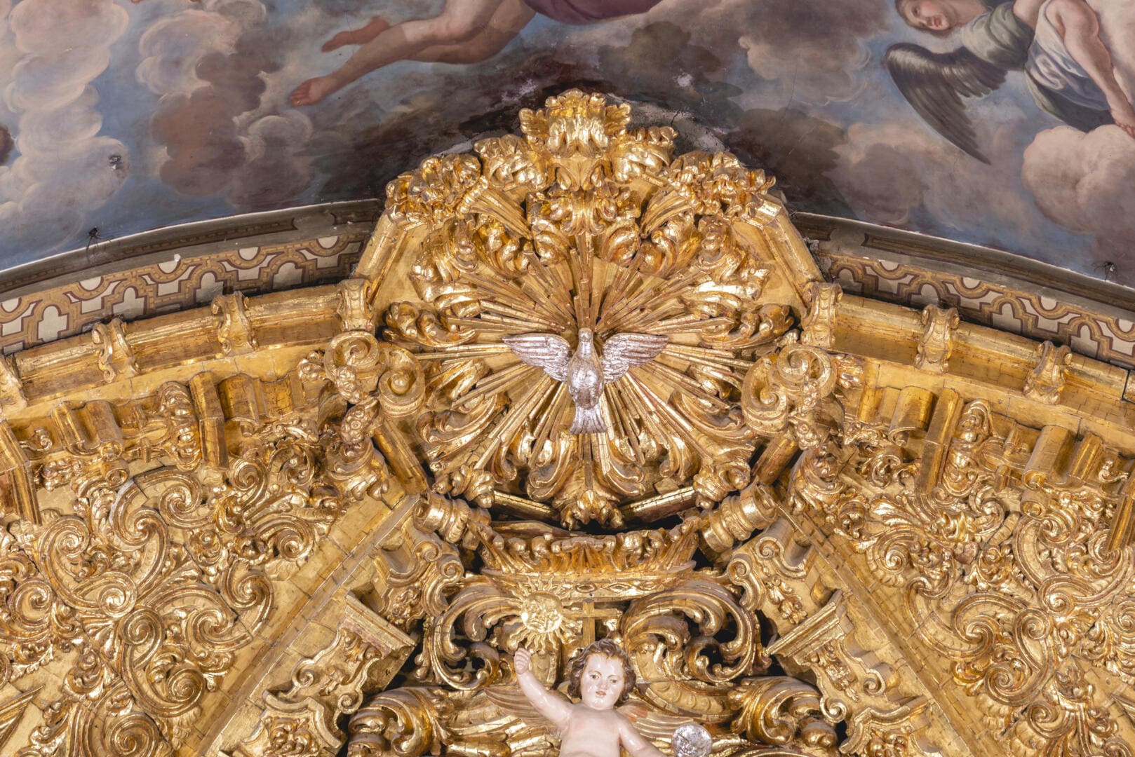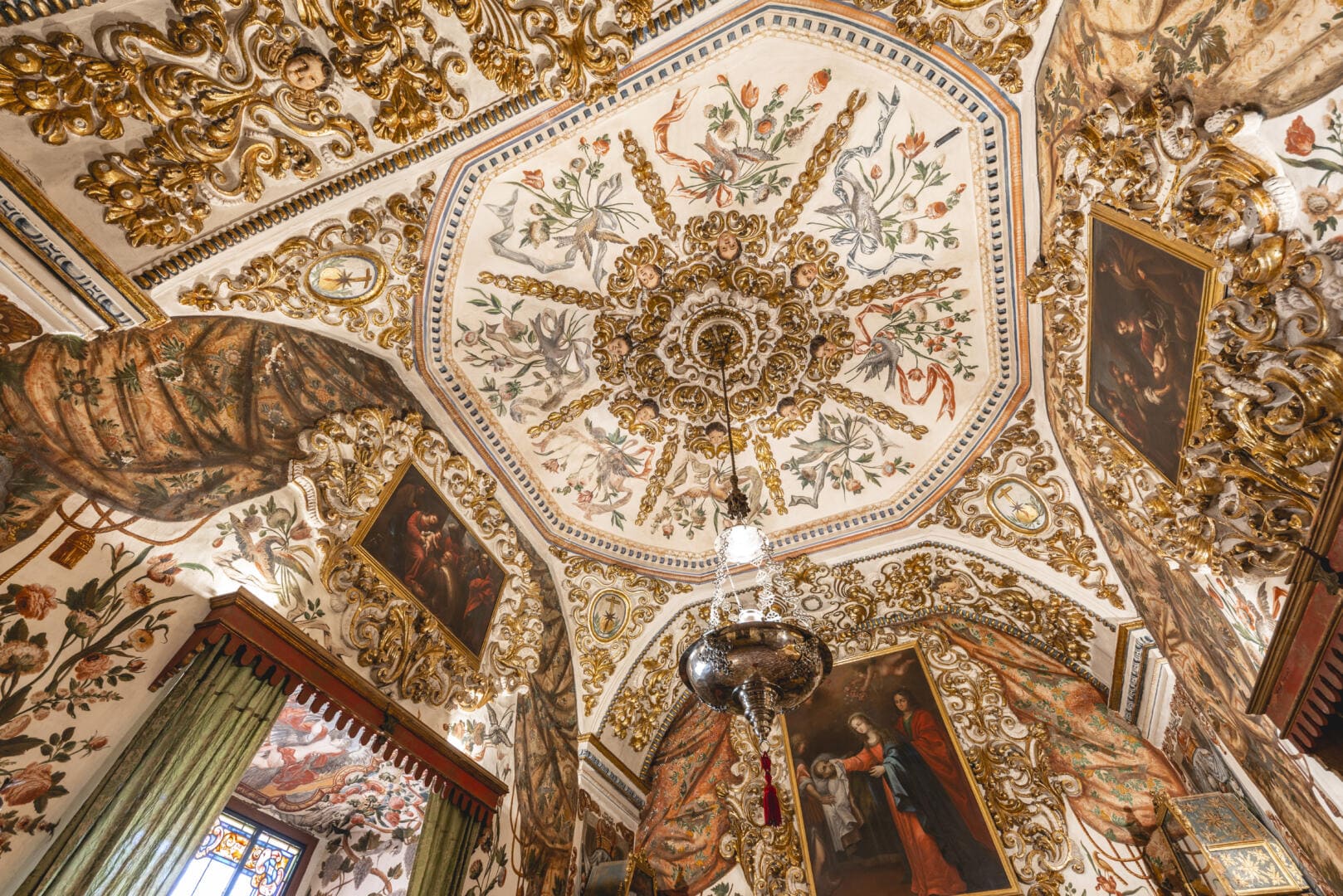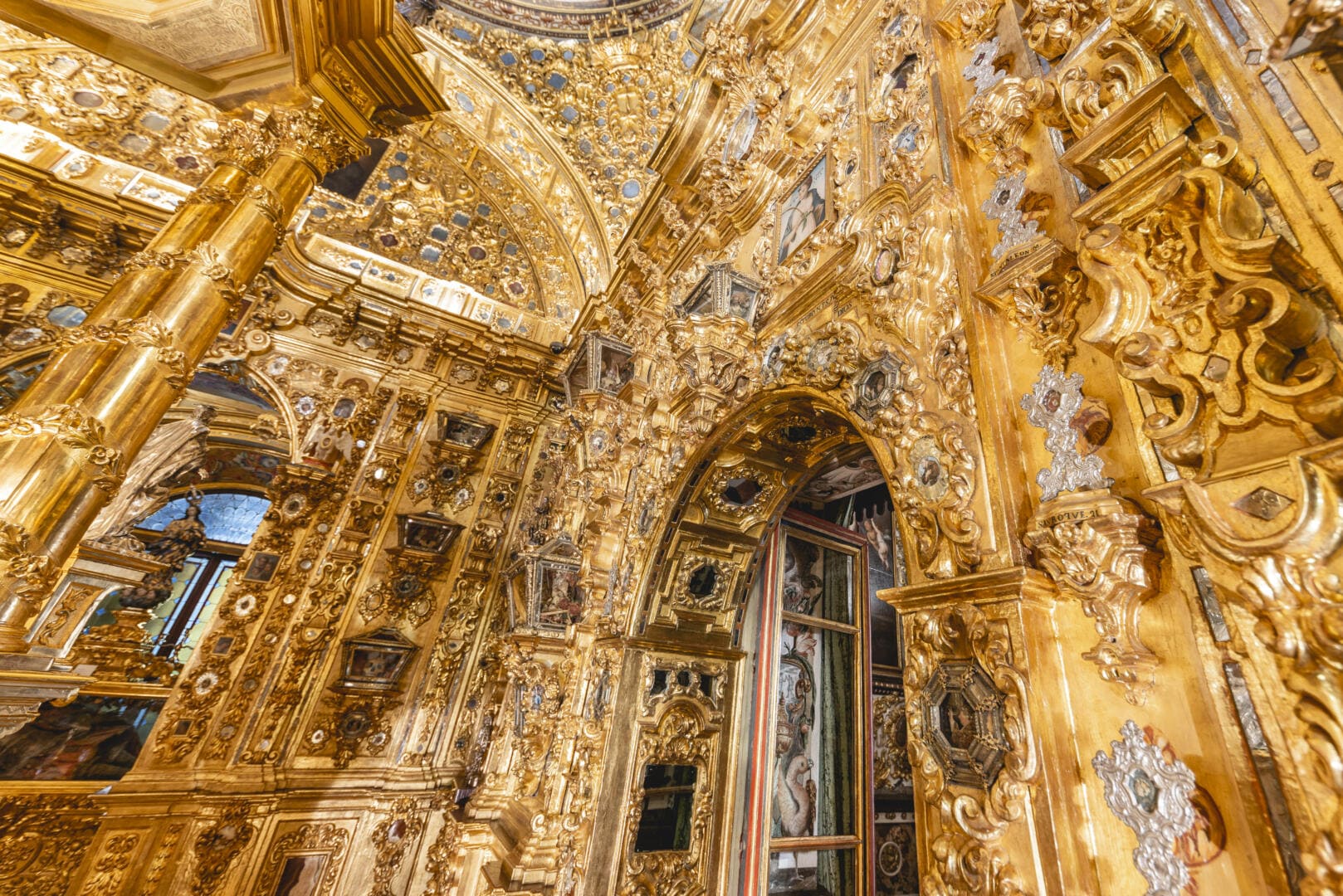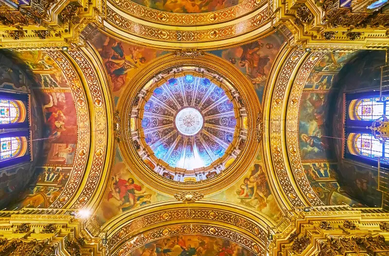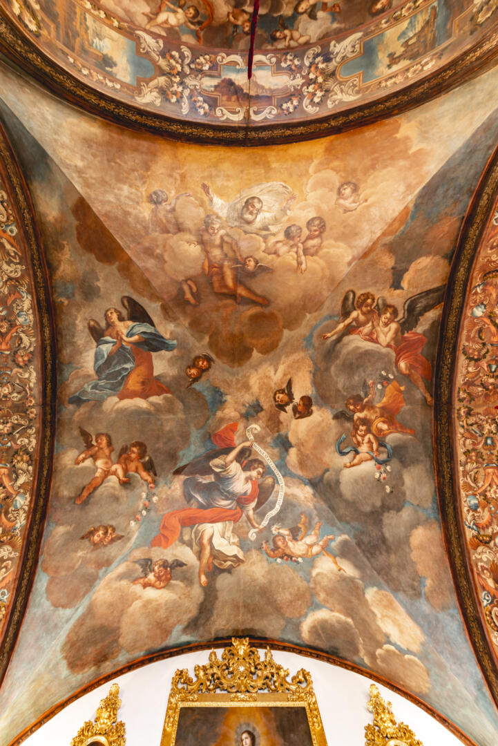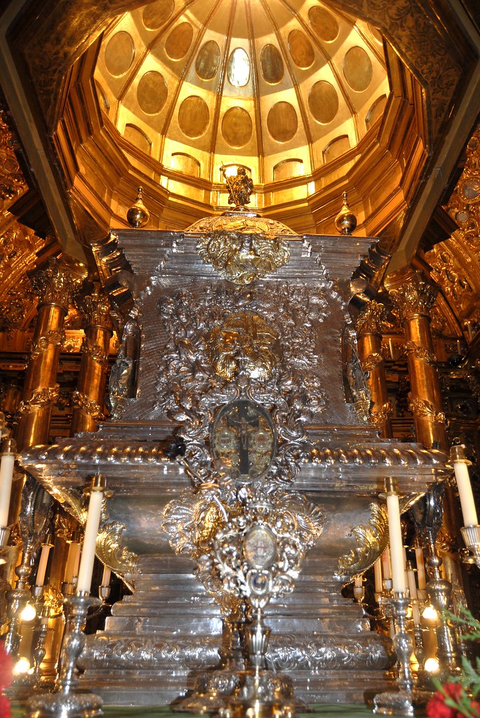 El interior se caracteriza por una gran riqueza ornamental: abundancia de dorados, tallas, relieves, policromía, frescos y espejos en el camarín que resguardan las reliquias del santo.