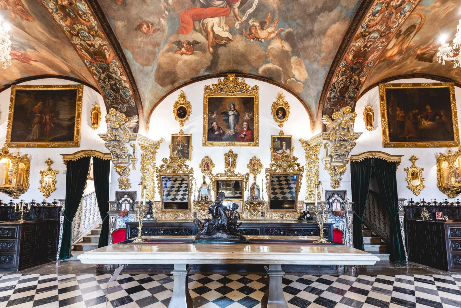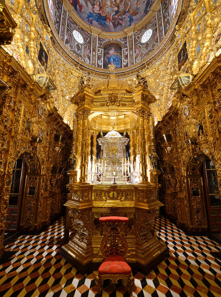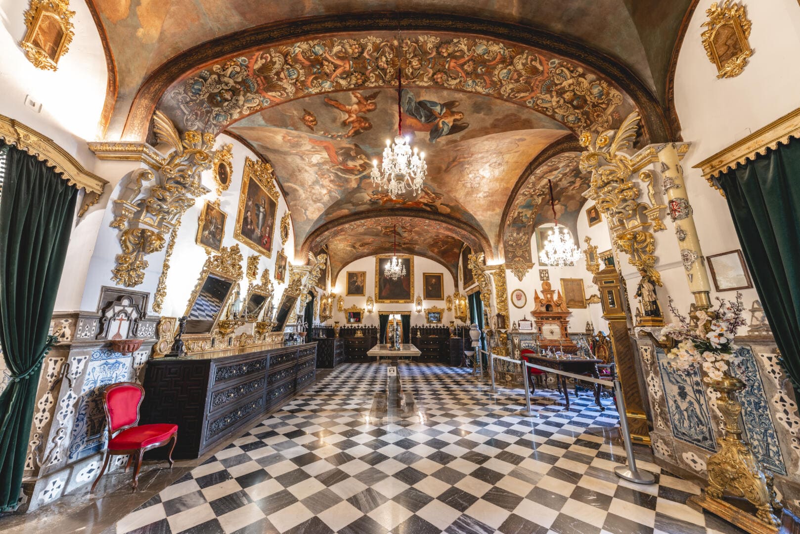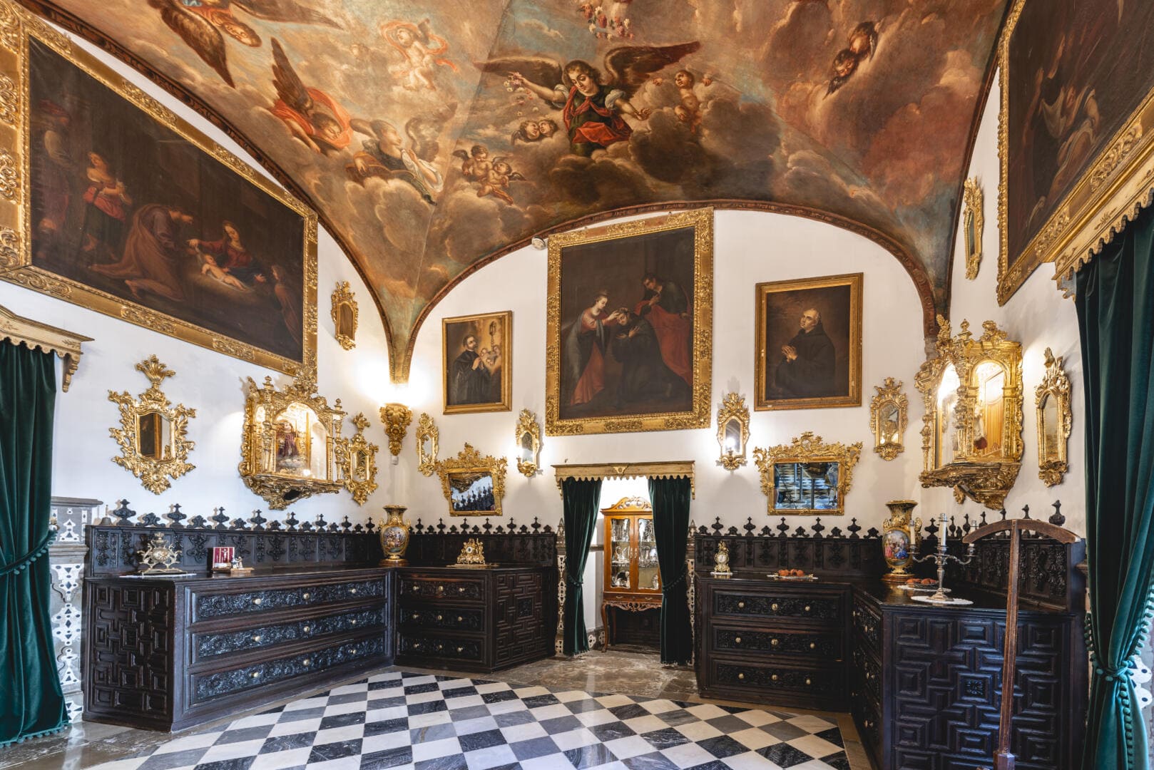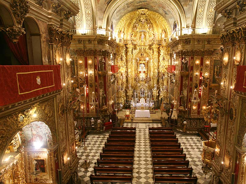 La capilla mayor cuenta con un altar, y en él, un camarín en el que se custodia la urna de plata maciza donde se custodian las reliquias de San Juan de Dios. Las diversas capillas albergan importantes obras escultóricas y pictóricas, destacando los frescos.