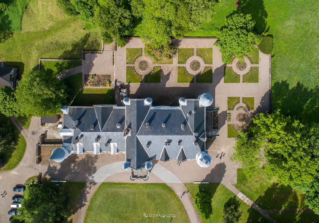 El resultado fue un edificio de estilo neogótico escocés, con fachadas blancas, torres angulares y techos escalonados que recuerdan a los castillos de las Highlands. El castillo se convirtió en el centro de una gran finca agrícola que llegó a incluir más de cincuenta edificios auxiliares.