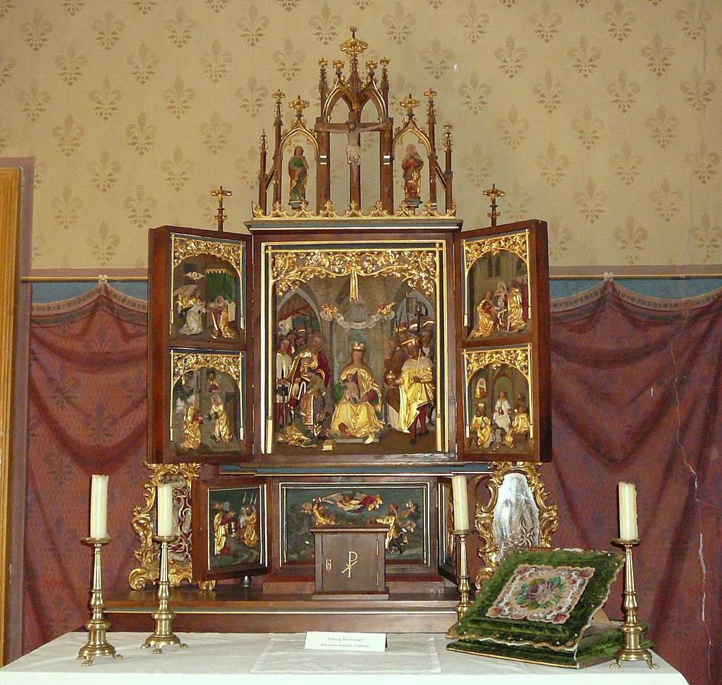 La capilla fue construida durante la última restauración de 1900 en estilo neogótico. El altar, un tríptico neogótico, es de la misma época. Representa cinco escenas de la vida de la Virgen María y de Jesús (la Anunciación, María y Isabel, el nacimiento de Cristo, María con Jesús en el templo y Jesús entre los escribas) y, en la parte inferior, escenas del Antiguo Testamento (con Adán y Eva en el paraíso).