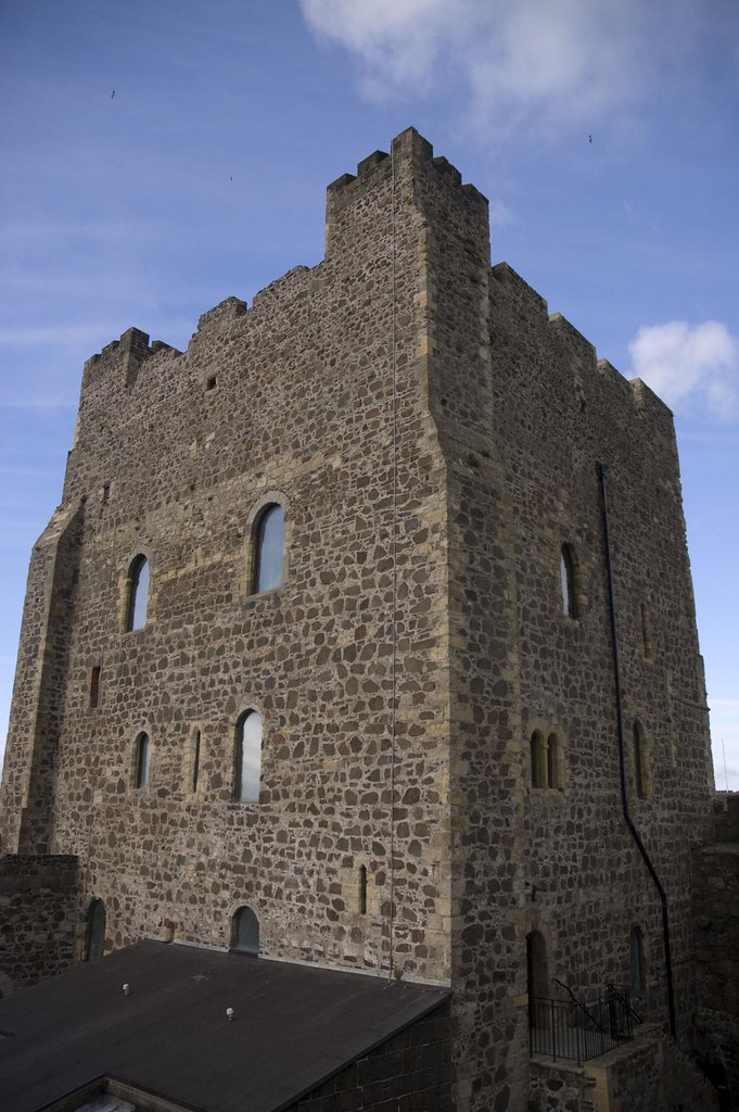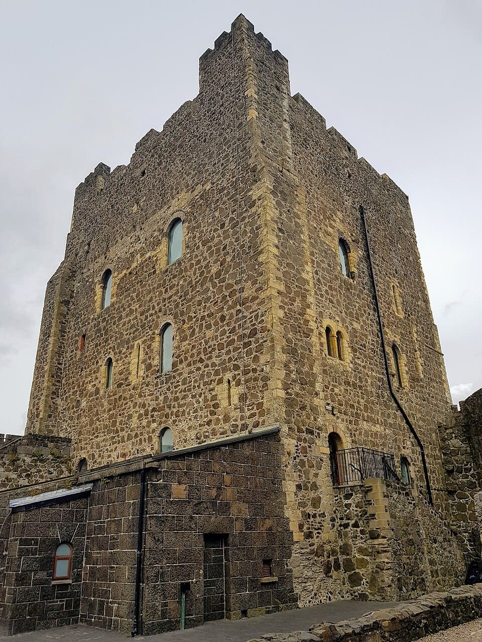 El castillo responde al modelo clásico de fortaleza normanda, con una torre del homenaje (keep) de cuatro plantas, gruesas murallas de piedra, bastiones defensivos y un patio interior. Su sólida estructura permitió que se mantuviera en uso militar durante más de siete siglos.