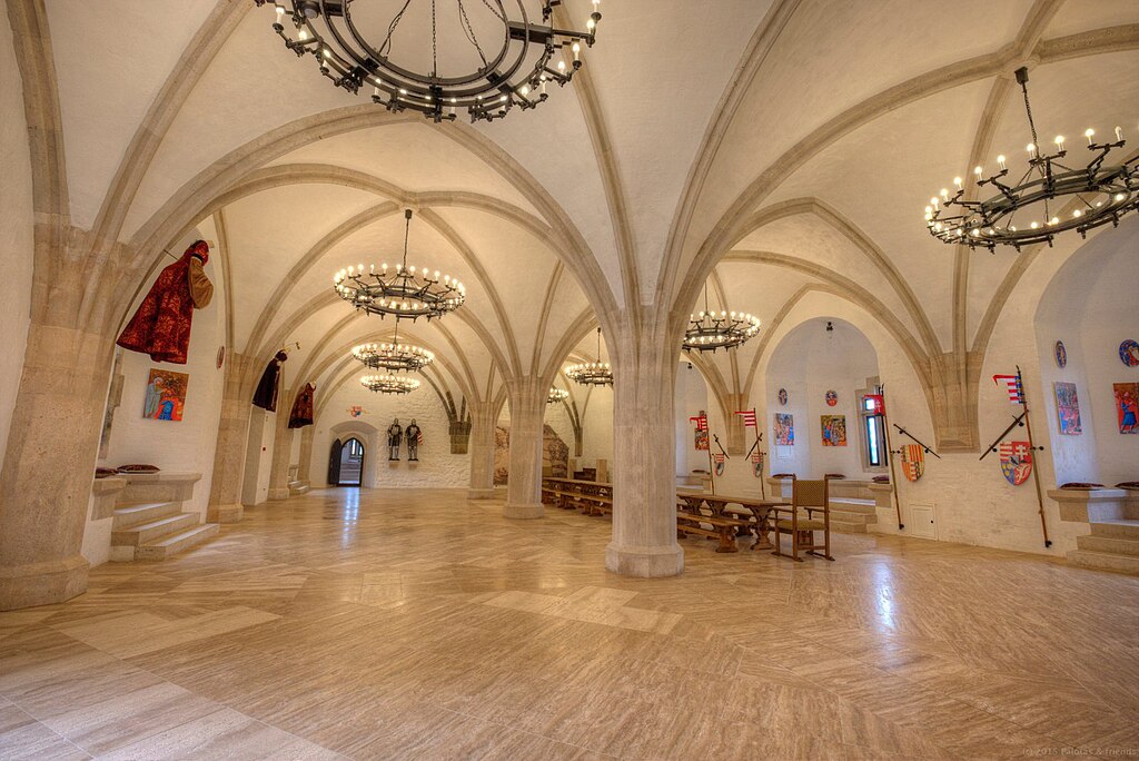 Tras esta devastación, el rey Béla IV ordenó levantar una fortaleza de piedra más sólida como parte de un programa defensivo en todo el reino. Más adelante, en 1364, bajo el reinado de Luis I el Grande, el castillo fue ampliado y transformado en una impresionante fortaleza de estilo gótico. Se construyeron cuatro torres en las esquinas, un patio interior cerrado y el Salón de los Caballeros, considerado en su época el más grande de Europa Central.