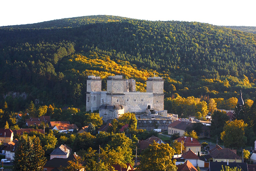 El primer castillo fue construido en el siglo XII, este probablemente se trataba de un castillo de Mota y fue destruido durante la invasión de los mongoles (1241-1242). El castillo que se encuentra actualmente, fue construido probablemente por el rey Bela IV, quien, después que los mongoles abandonaron el país, ordenó que se construyera un castillo en cada colina. En los primeros tiempos el castillo tenía una estructura oval con un torreón redondo, rodeado por un muro exterior poligonal. En 1316 fue mencionado como «castillo nuevo», lo que confirma la teoría de que fue construido en el lugar de un castillo destruido. A juzgar por un documento que enumera los impuestos pagados por las ciudades en 1330, parece ser que la ciudad en torno al castillo fue una de las más ricas del país.