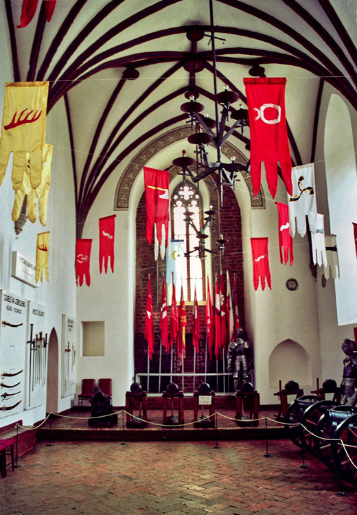 La construcción de la fortaleza comenzó a finales del siglo XIII y principios del XIV. En el siglo XIV, el rey Wladyslaw I el Codo Alto de Polonia intentó incorporar la fortaleza a su reino. En 1408, el castillo acogió al gran maestre Ulrich von Jungingen. En 1422, el castillo fue destruido por un ejército del Reino de Polonia. Entre los años 1611 y 1625, el castillo fue propiedad de Anna Vasa (una princesa polaco-sueca y hermana del rey Segismundo III), y fue la época de mayor esplendor del castillo. Durante la época del Diluvio Sueco, el castillo sufrió daños y comenzó a decaer. Entre 1941 y 1944, los patios se utilizaron como base de entrenamiento para las Juventudes Hitlerianas. Después de la Segunda Guerra Mundial, el castillo fue restaurado entre 1947 y 1953. Todas las ruinas se reconstruyeron entre 1959 y 1966, y en 2006 se completaron otras adaptaciones históricas del castillo. En la actualidad, el castillo se utiliza como museo regional y alberga una amplia colección de objetos militares.
