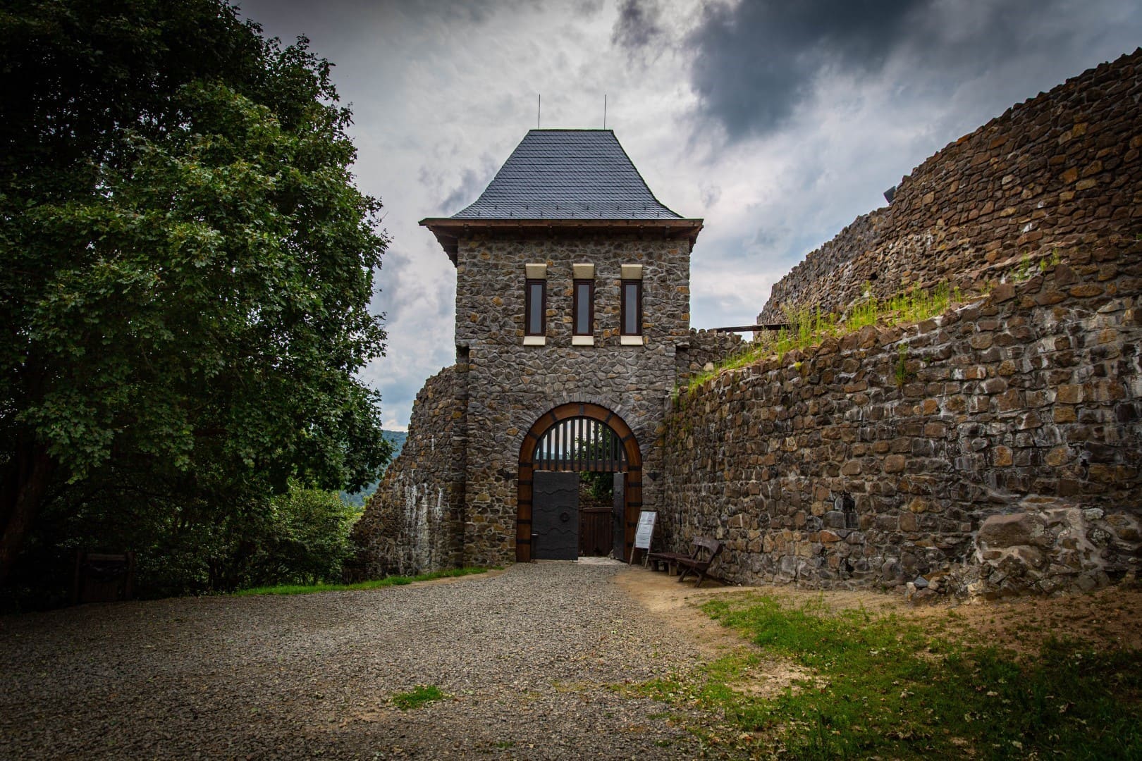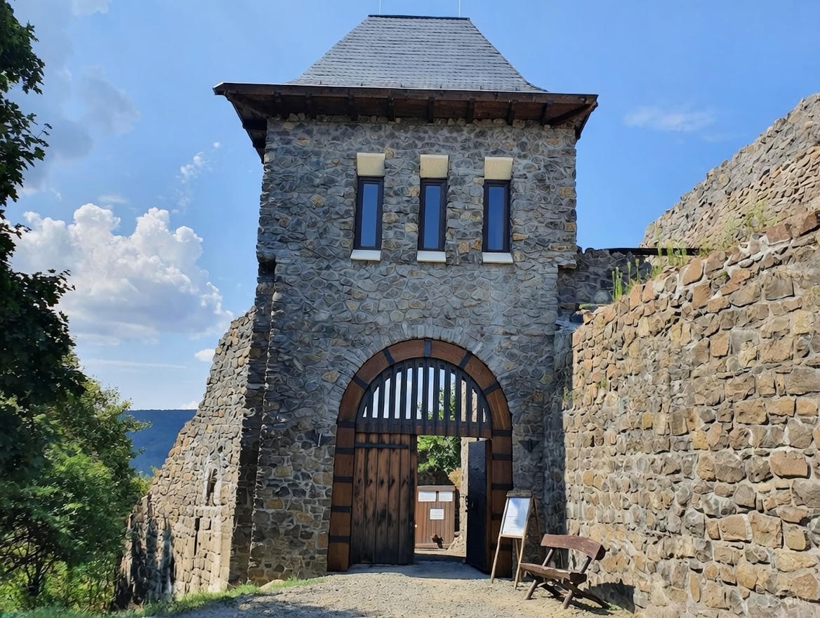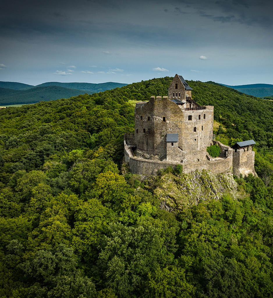 El castillo de Hollókő se encuentra entre las montañas de Cserhát, cerca de Hollókő, un pueblo palóc declarado Patrimonio de la Humanidad por la UNESCO, al borde de un precipicio rocoso.