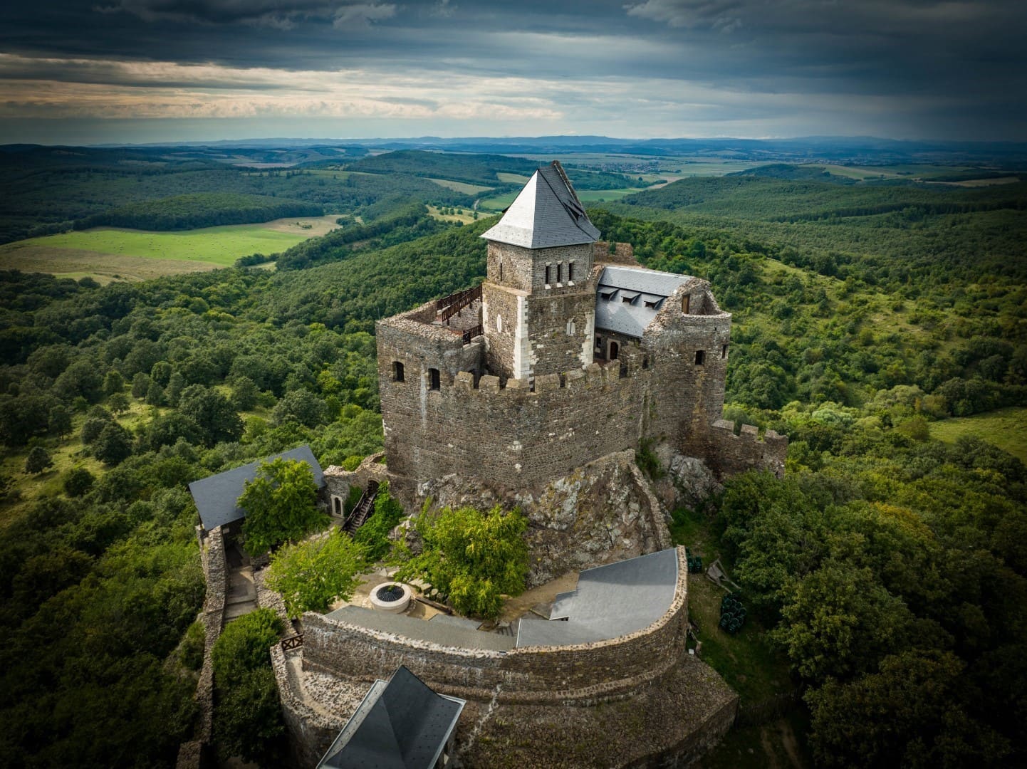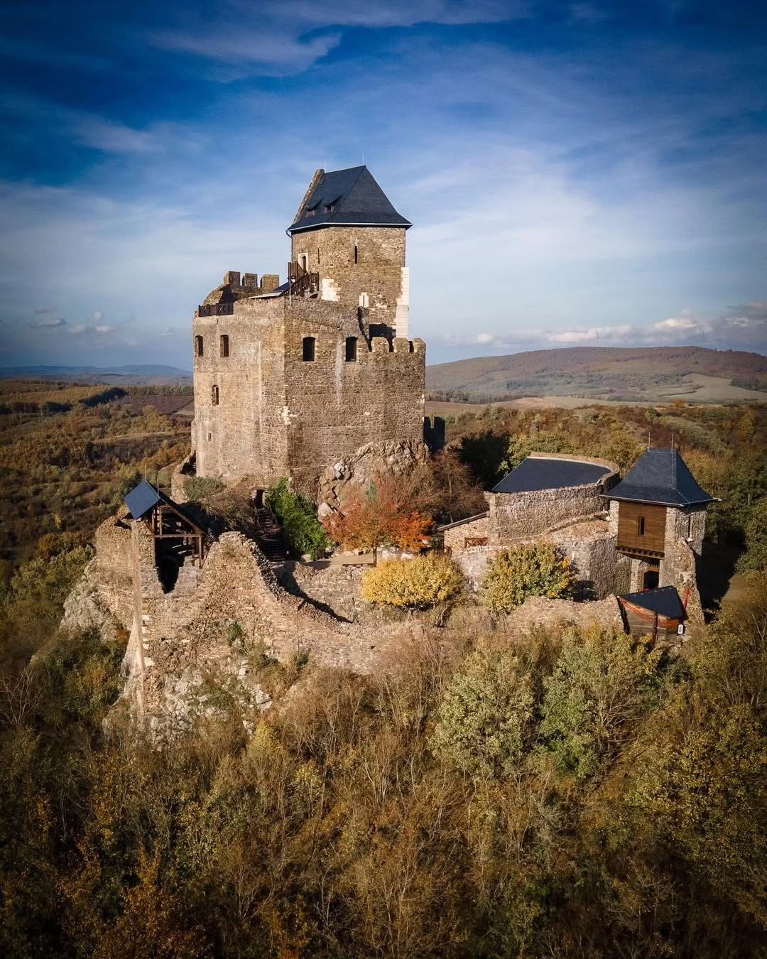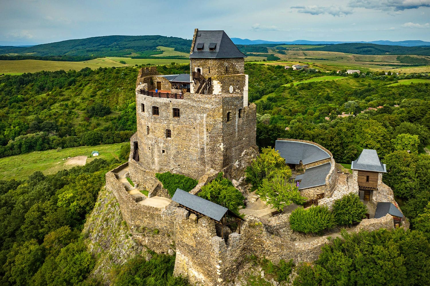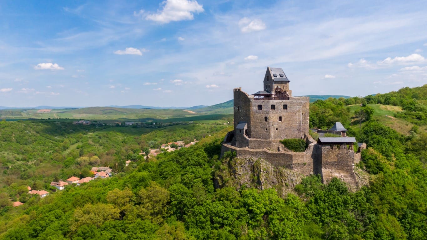 El Castillo de Hollókő se alza sobre una roca en las colinas de Cserhát, en el norte de Hungría, muy cerca del pintoresco pueblo tradicional de Hollókő, en el condado de Nógrád. Este emplazamiento ofrece vistas panorámicas del paisaje circundante y domina el valle donde se ubica la localidad que le dio nombre.