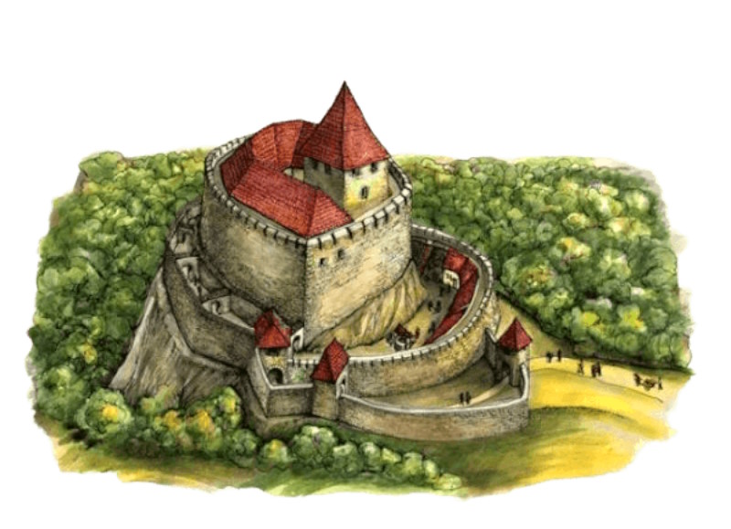 Los miembros de la rama Illés del clan Kacsics comenzaron a construir el castillo de Hollókő sobre la roca situada junto al pueblo tras la invasión tártara (András Kacsics probablemente construyó los pisos inferiores de la torre vieja antes de la invasión tártara). La fortificación se amplió gradualmente a lo largo de los siglos: se construyeron murallas, bastiones, viviendas y cisternas junto a las murallas originales del siglo XIII. Aparece mencionada por primera vez en un documento de 1310 con el nombre de Castrum Hollokew.