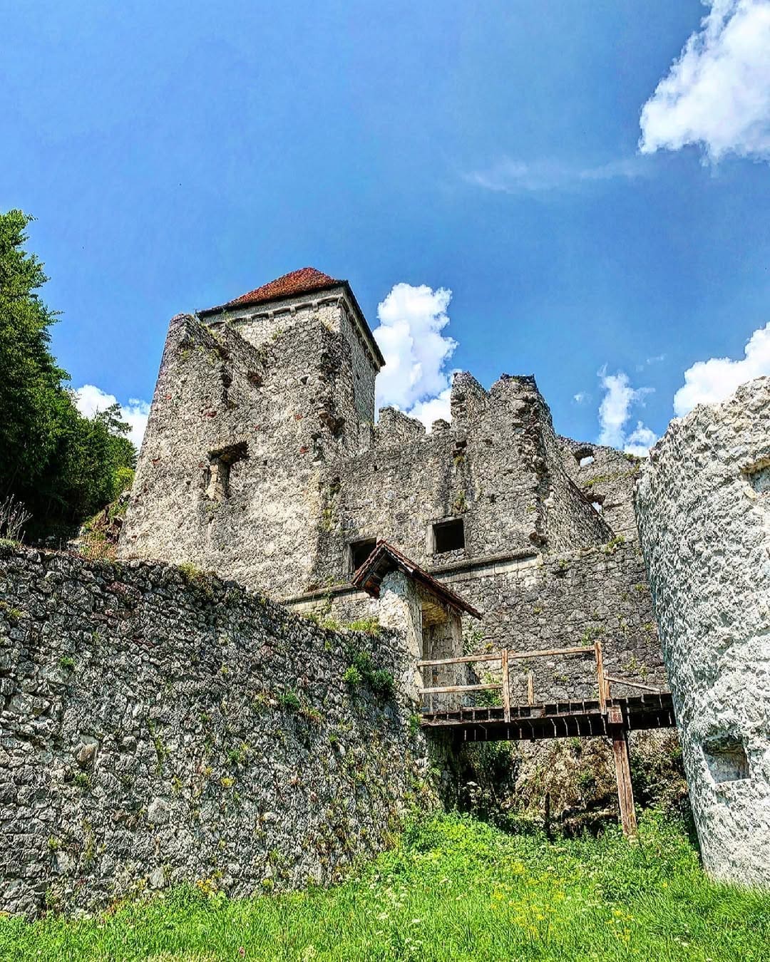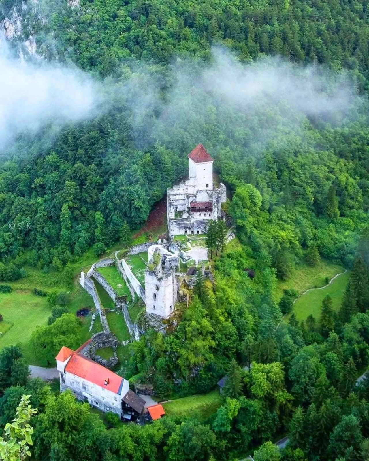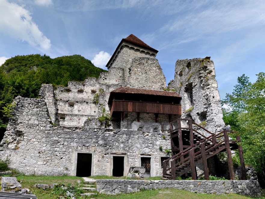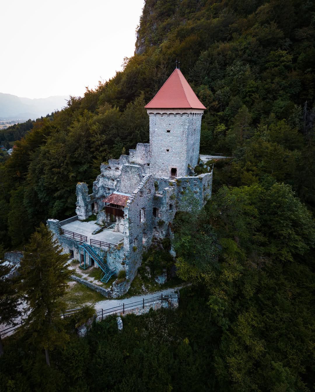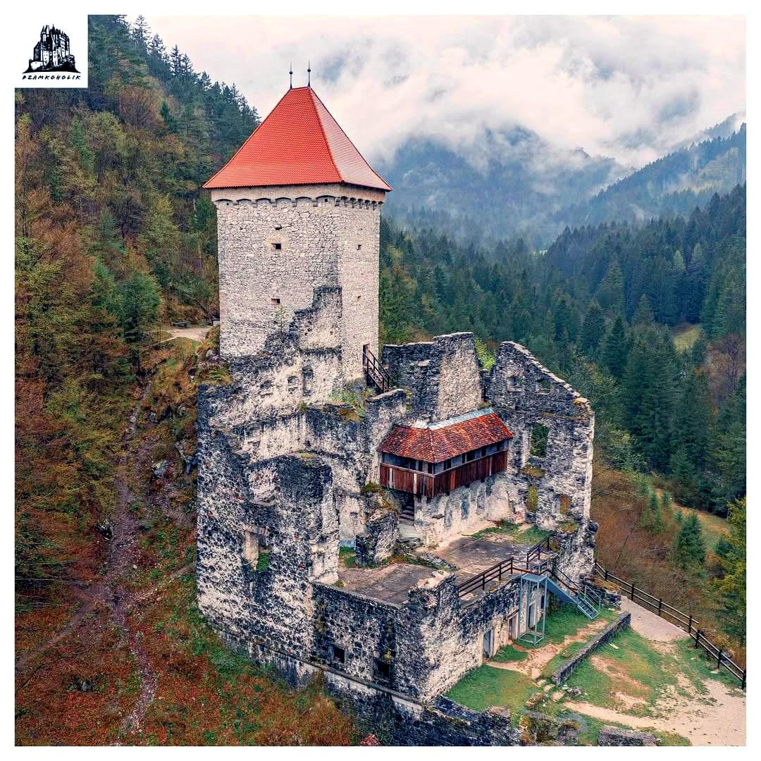Descripción:El castillo de Kamen (en alemán, Stain) son hoy unas imponentes ruinas situadas en una estrecha cresta que cierra el valle de Draga, cerca de la localidad de Begunje na Gorenjskem.