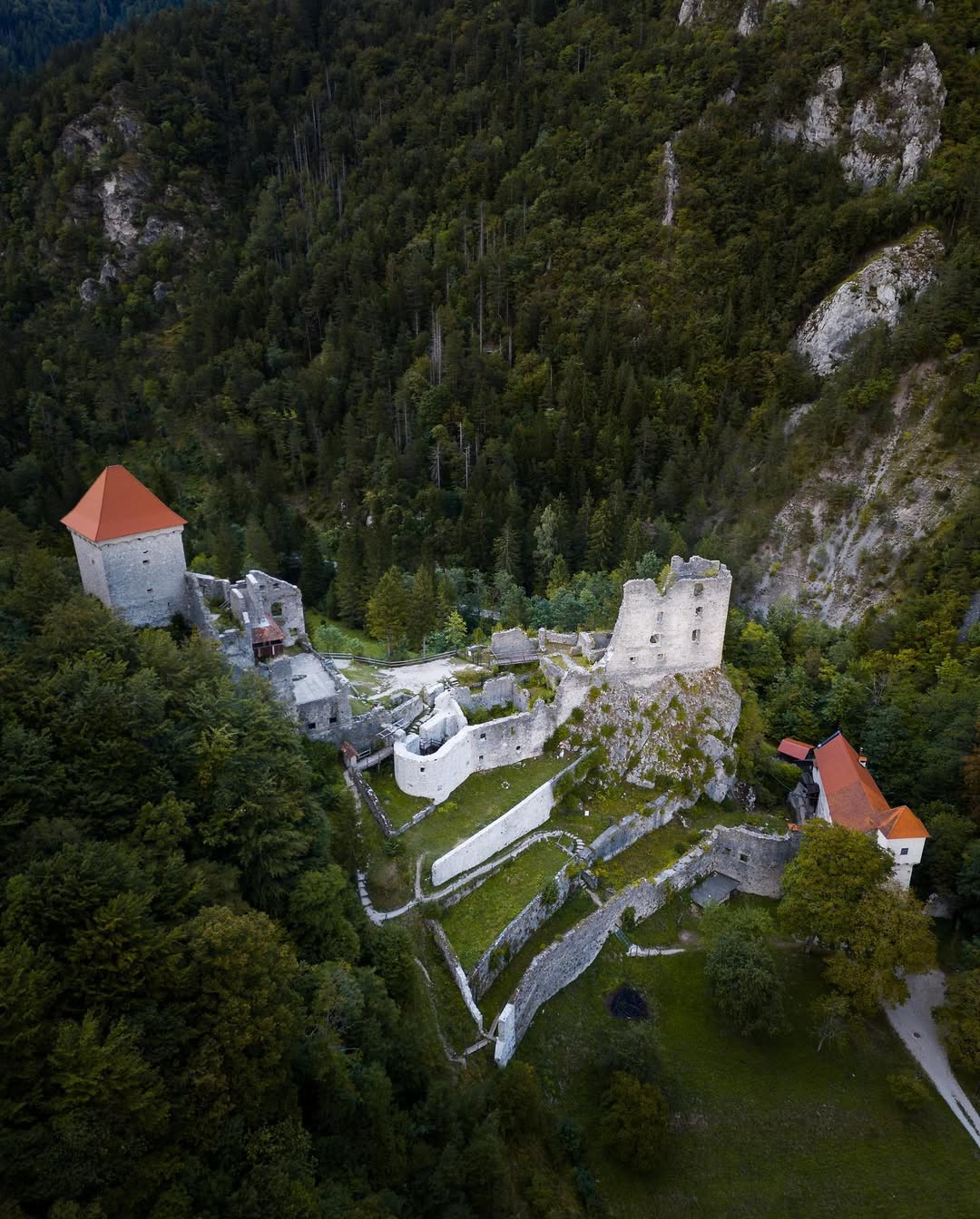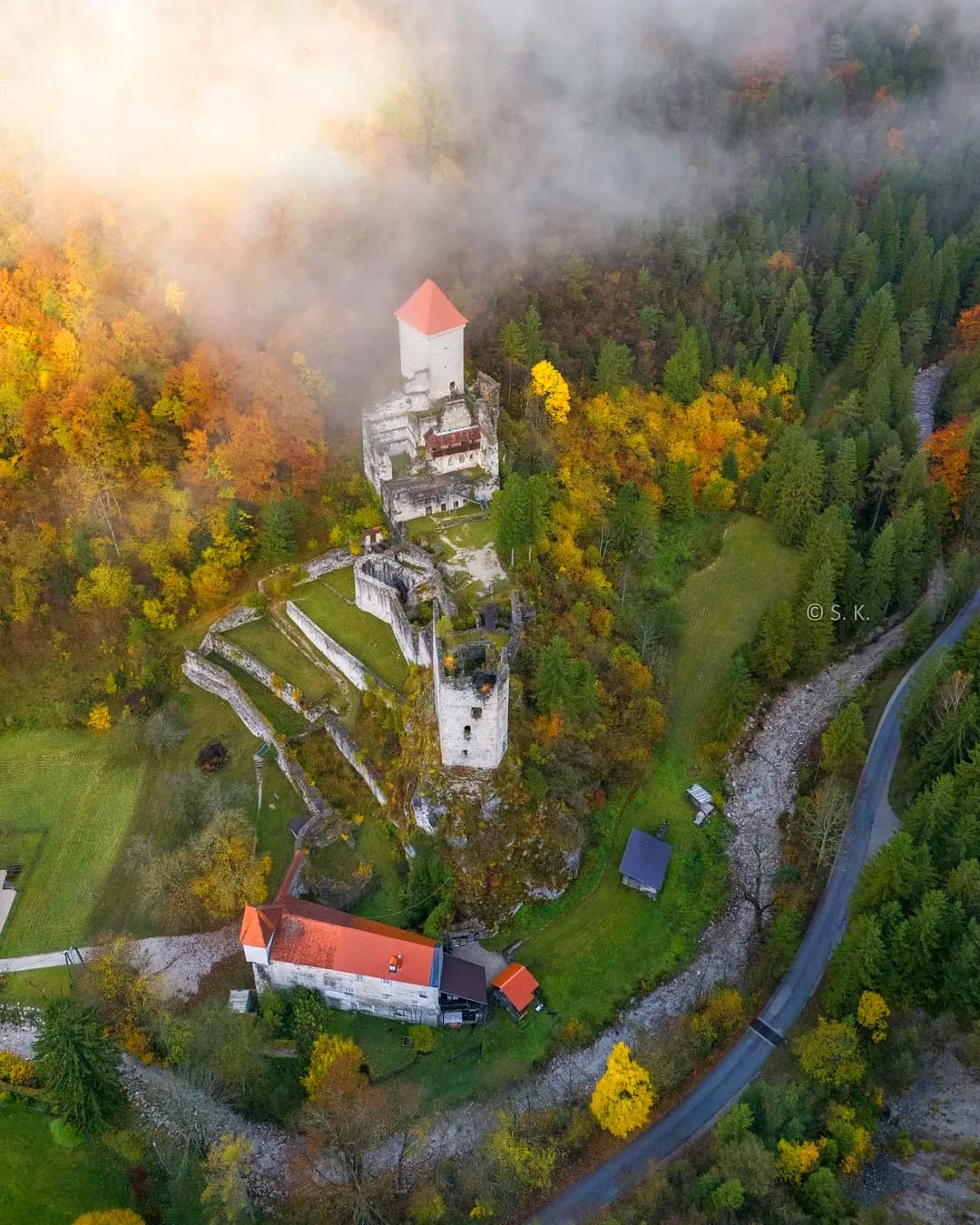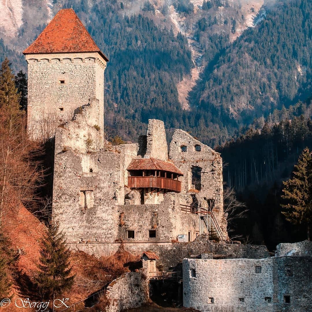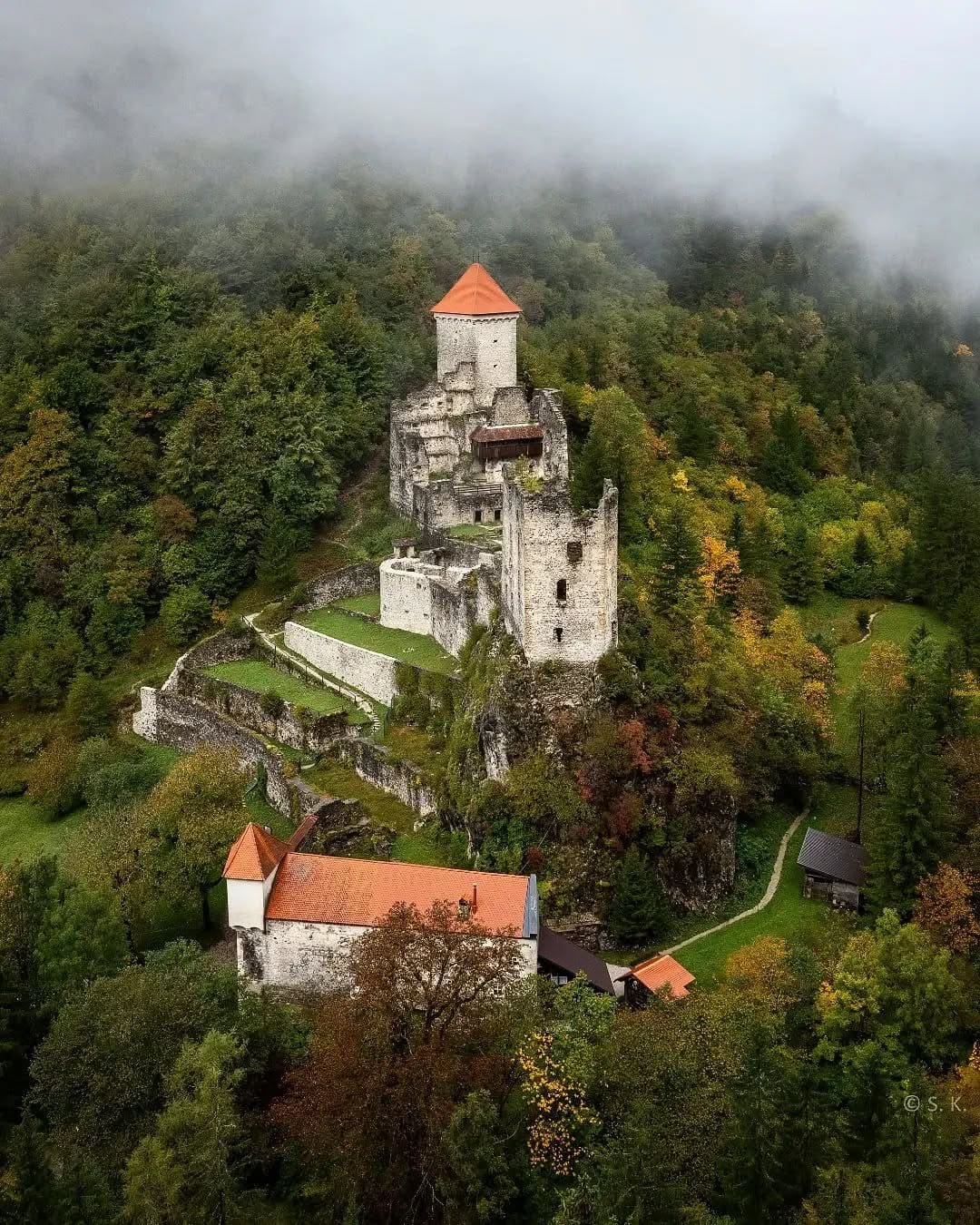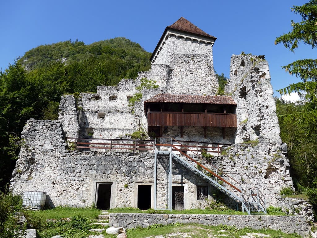 Descripción:El castillo de Kamen (en alemán, Stain) son hoy unas imponentes ruinas situadas en una estrecha cresta que cierra el valle de Draga, cerca de la localidad de Begunje na Gorenjskem.