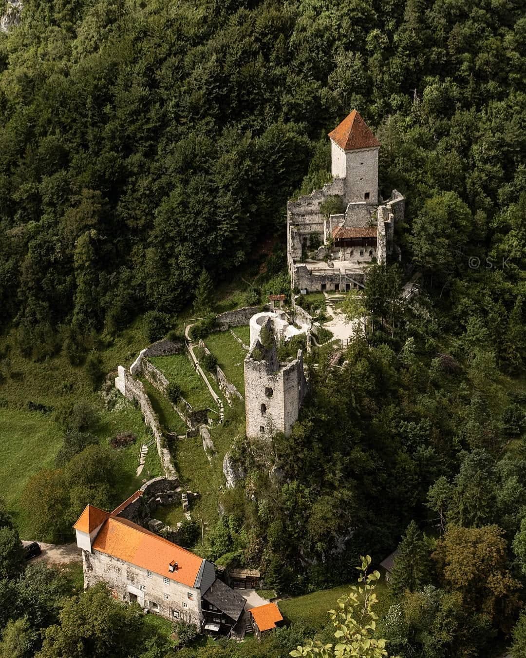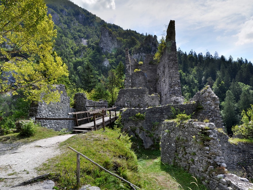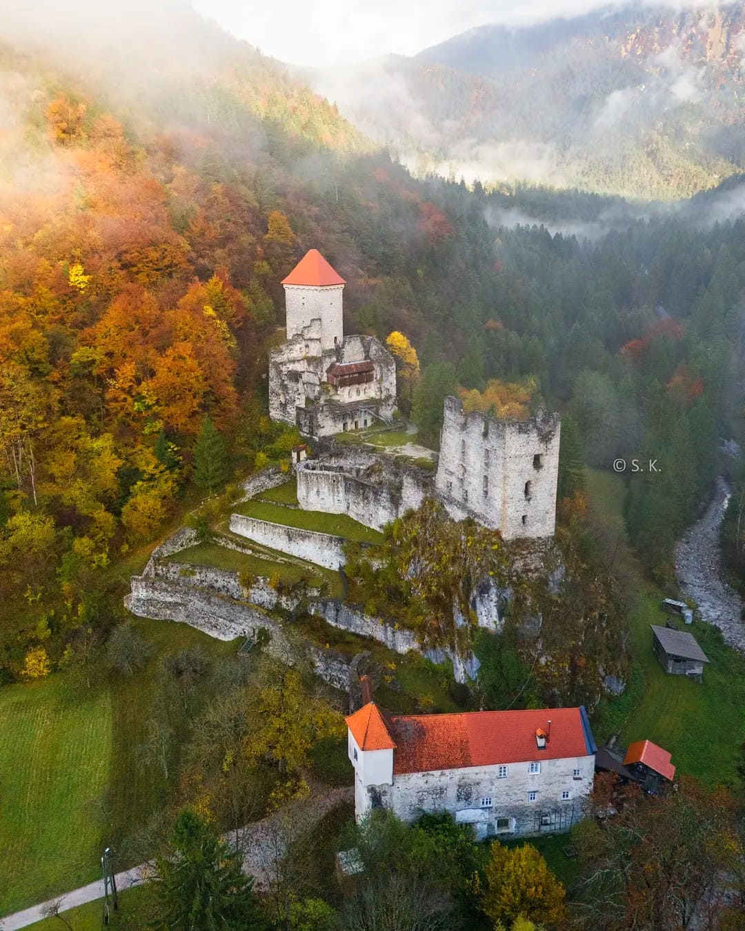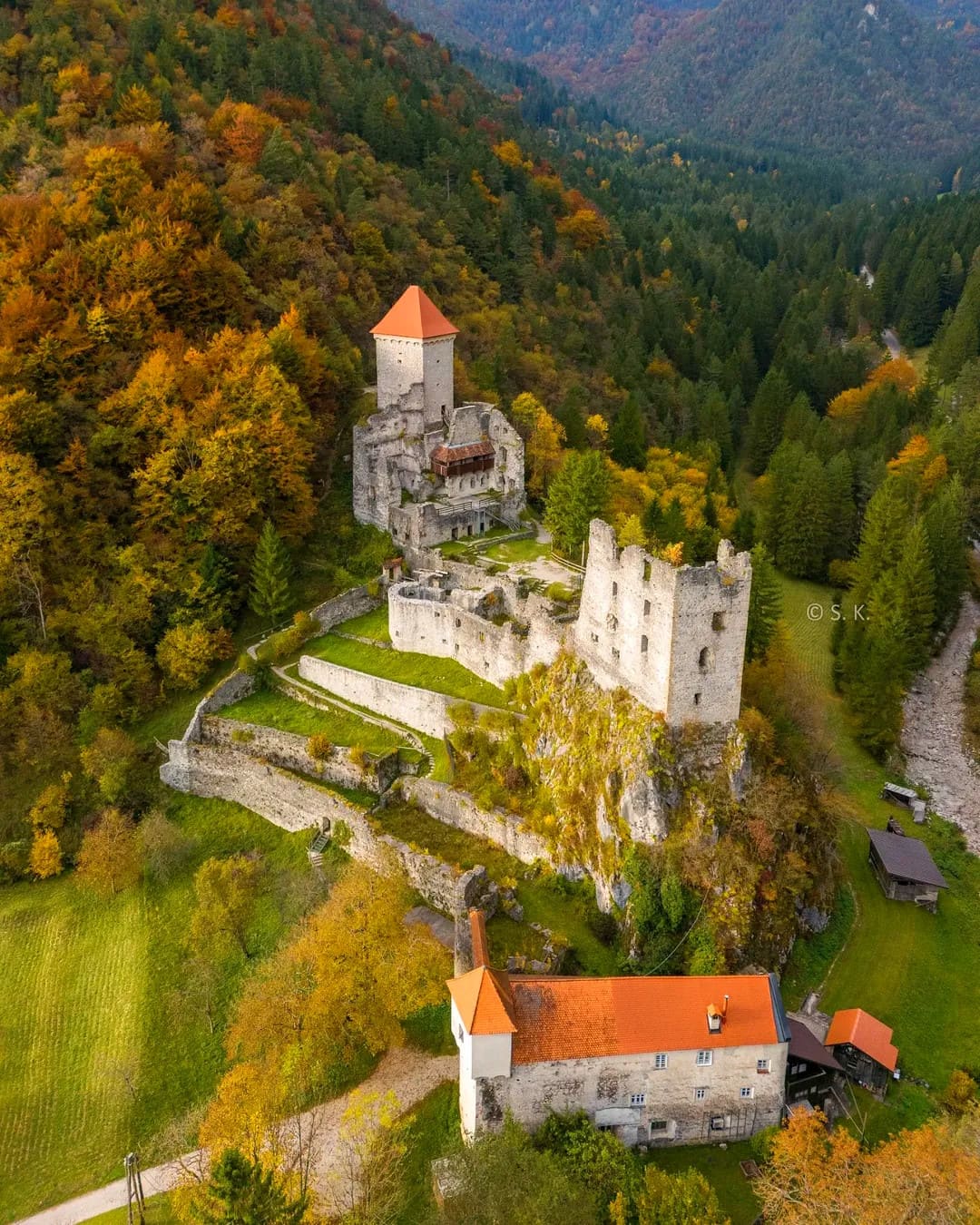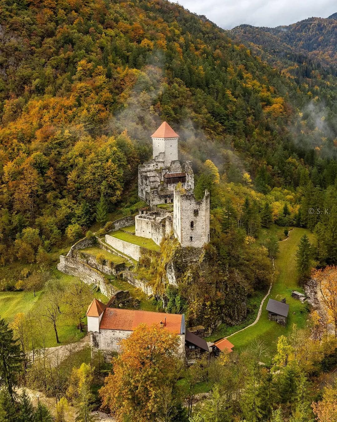 Descripción:El castillo de Kamen (en alemán, Stain) son hoy unas imponentes ruinas situadas en una estrecha cresta que cierra el valle de Draga, cerca de la localidad de Begunje na Gorenjskem.