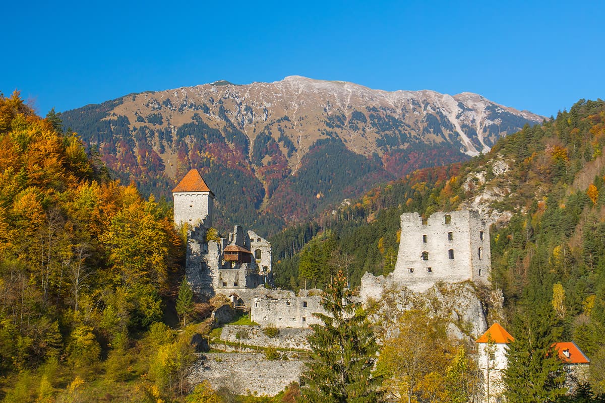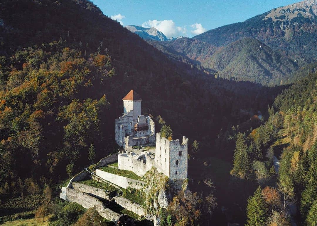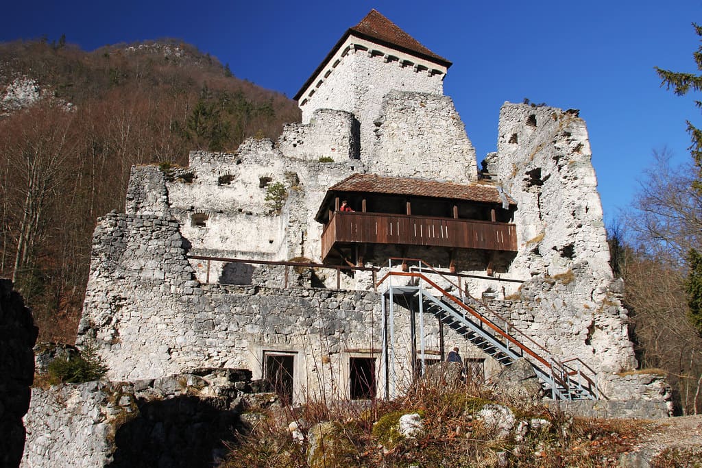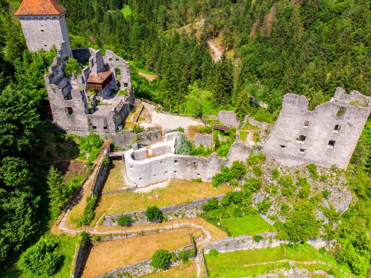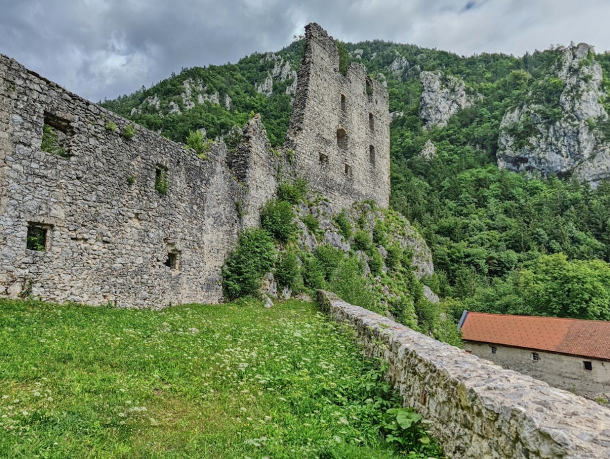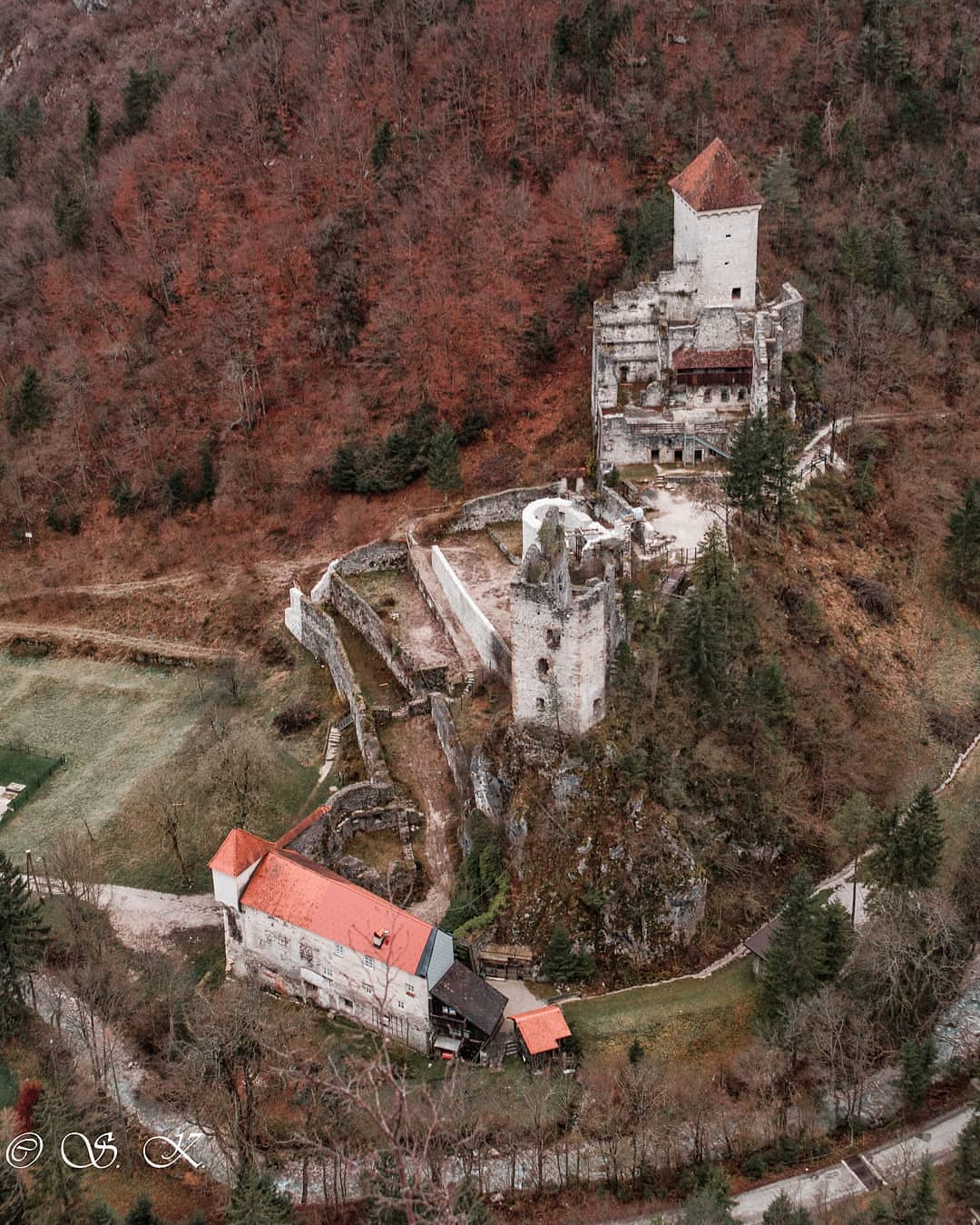 Descripción:El castillo de Kamen (en alemán, Stain) son hoy unas imponentes ruinas situadas en una estrecha cresta que cierra el valle de Draga, cerca de la localidad de Begunje na Gorenjskem.