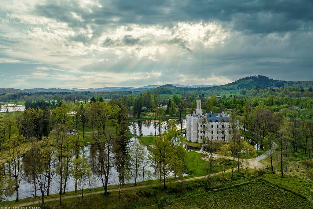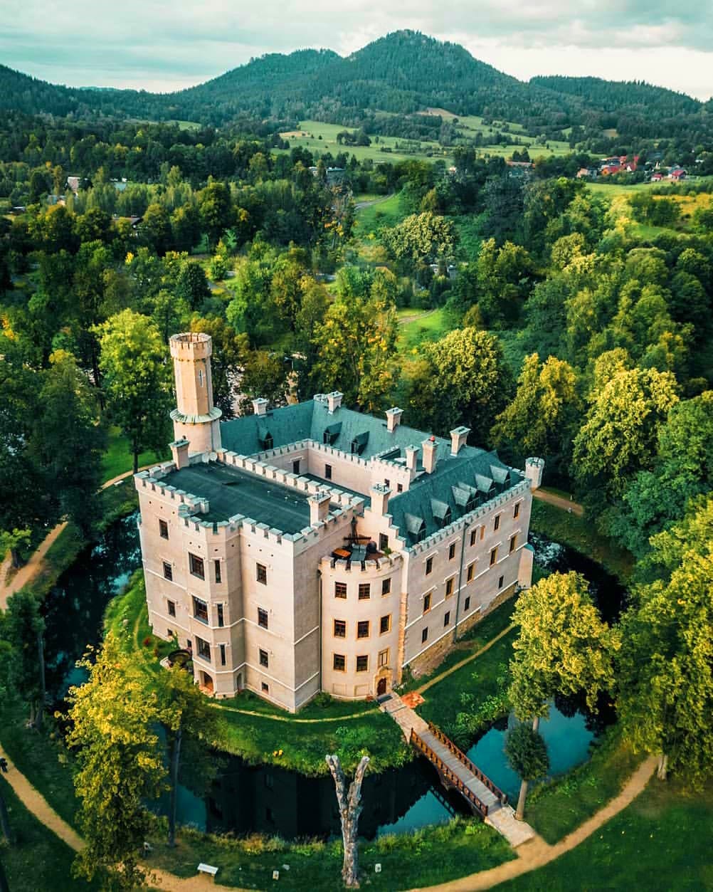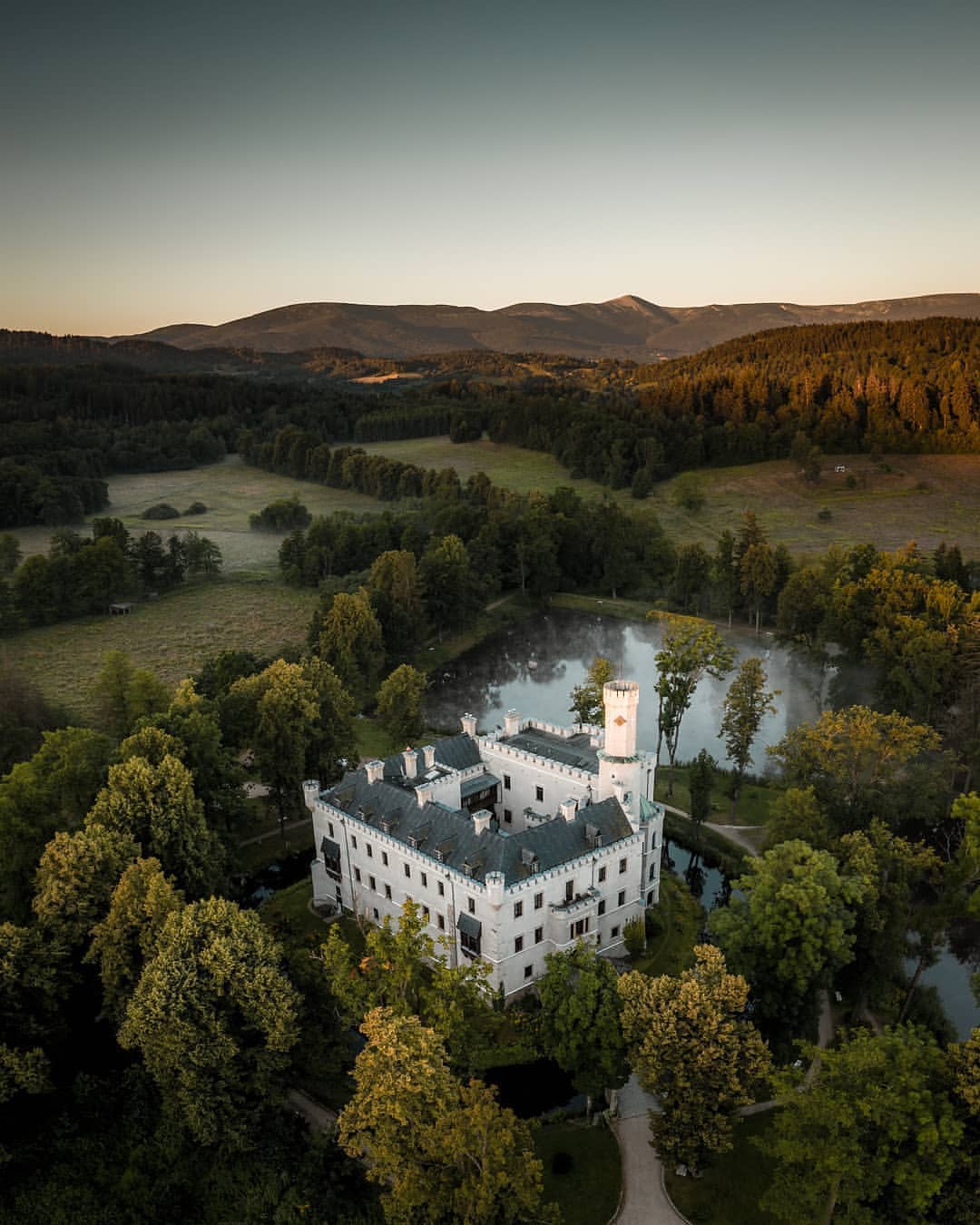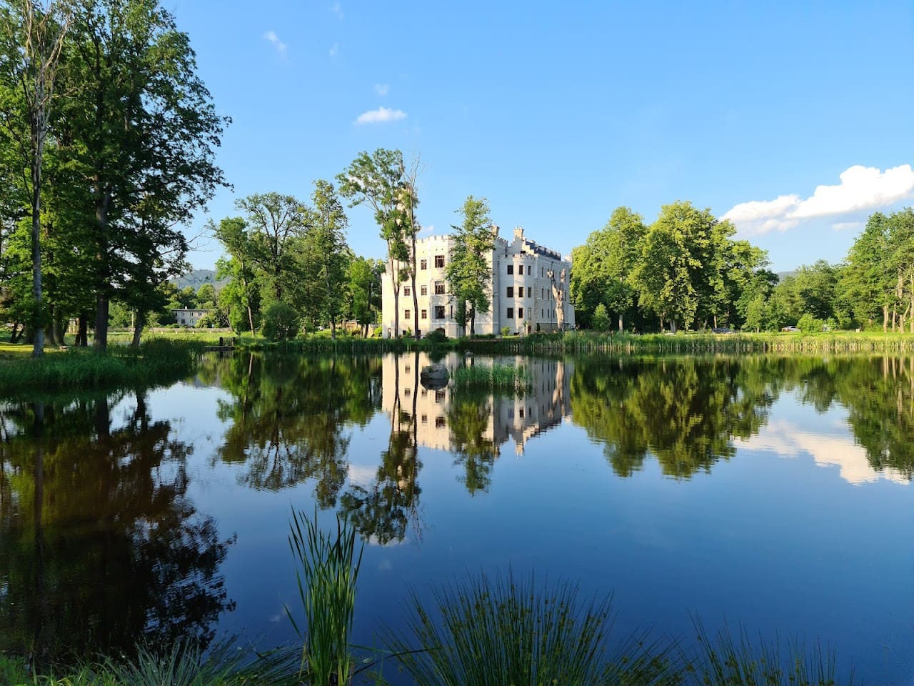 Descripción:El castillo de Karpniki — conocido también como Zamek Karpniki o Schloss Fischbach — es un verdadero cuento hecho piedra. Se alza en el valle de Hirschberg (antes parte de Silesia, hoy en Polonia), en el pequeño poblado de Karpniki, rodeado de colinas y estanques que contribuyen a su atmósfera romántica.