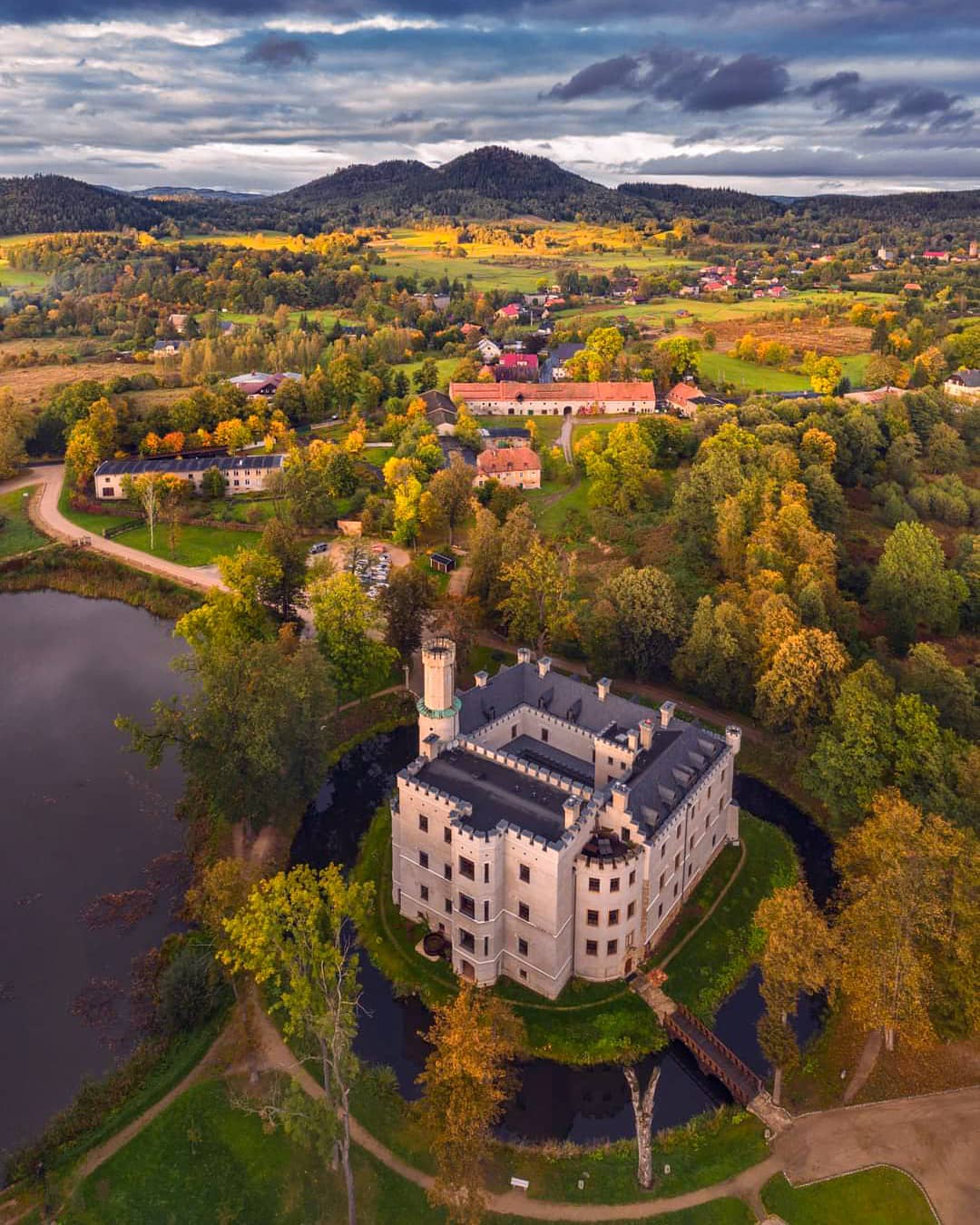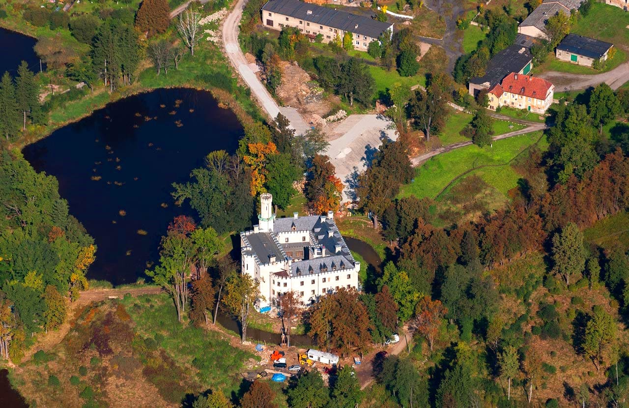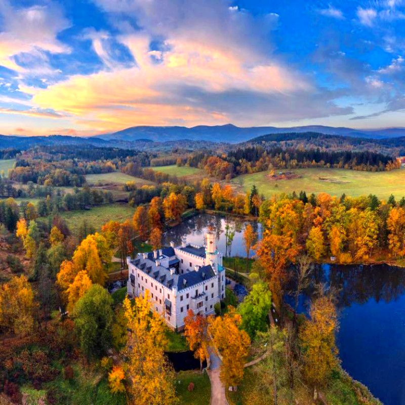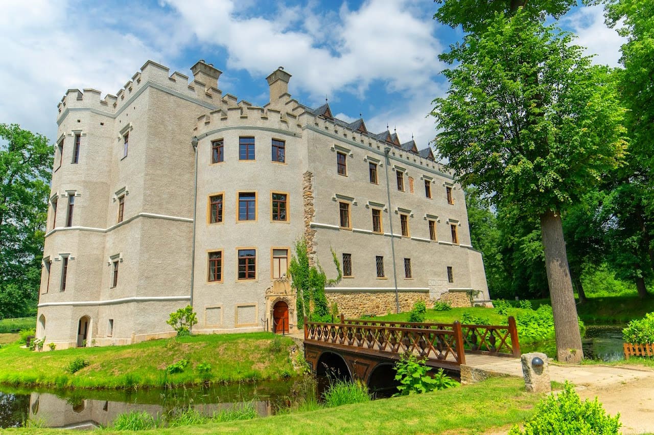 Descripción:El castillo de Karpniki — conocido también como Zamek Karpniki o Schloss Fischbach — es un verdadero cuento hecho piedra. Se alza en el valle de Hirschberg (antes parte de Silesia, hoy en Polonia), en el pequeño poblado de Karpniki, rodeado de colinas y estanques que contribuyen a su atmósfera romántica.