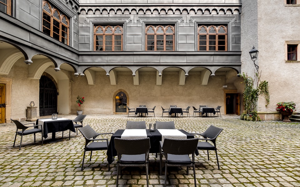 Hoy, sus estancias combinan elementos antiguos renovados —escaleras barrocas, salas con yeserías renacentistas, galerías neogóticas— con comodidades modernas. Los huéspedes pueden pasear por el jardín del castillo, ver reflejos en los estanques al atardecer, sentir el eco de siglos en los muros y dormir como realeza en un entorno lleno de historias.