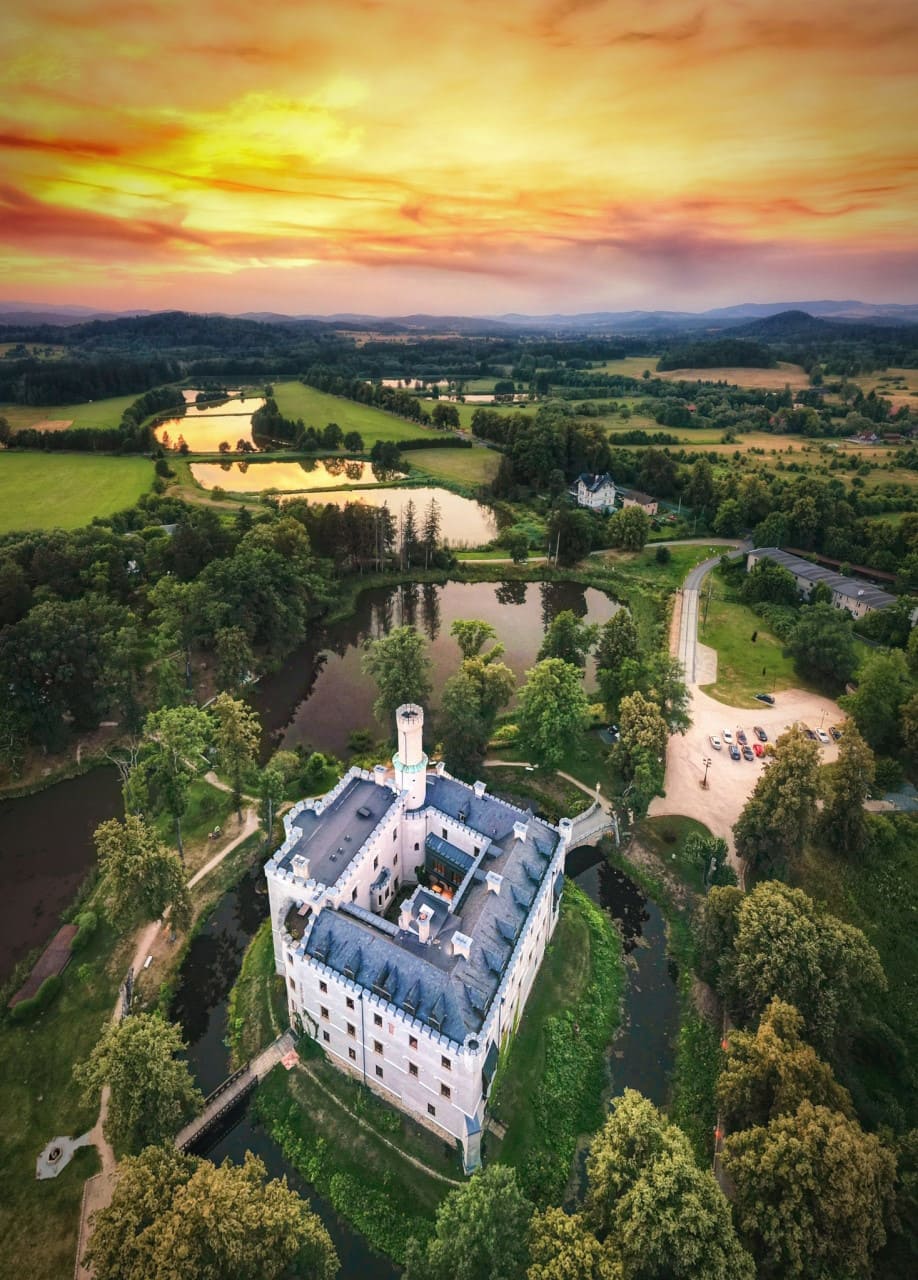 El castillo de Karpniki es hoy un hotel boutique de lujo que combina el pasado y el presente. Sus habitaciones conservan la esencia neogótica, con muros de piedra, mobiliario histórico y vistas al valle de Jelenia Góra. Cuenta con restaurante gourmet, spa, sauna y jardines donde el tiempo parece detenerse. Es un refugio perfecto para quienes buscan romanticismo, historia y naturaleza en un solo lugar.