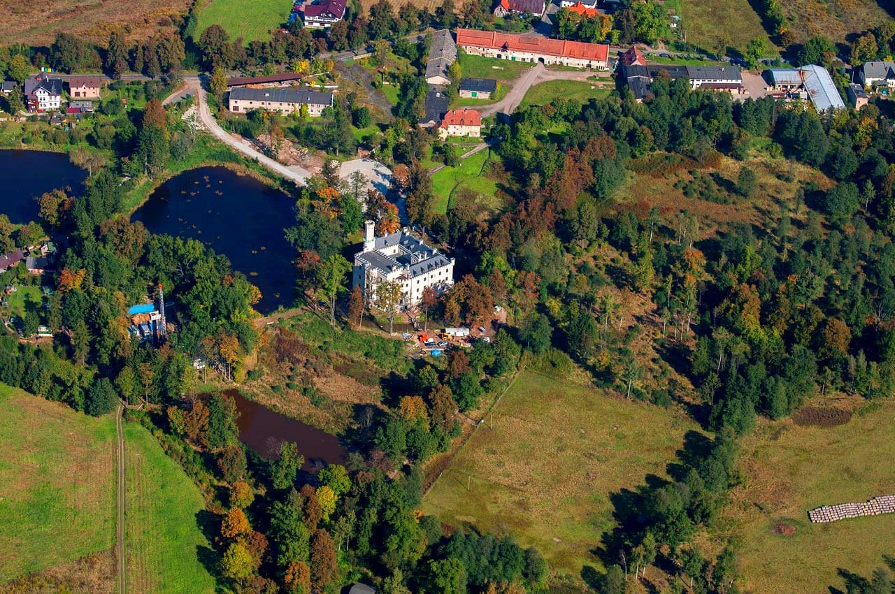 El primer propietario documentado fue Cunze von Predel. En 1476 la poderosa familia von Schaffgotsch adquirió la propiedad, manteniéndola por un tiempo antes de que cambiara nuevamente de manos en varias ocasiones durante los siglos siguientes. En el tránsito del siglo XVI al XVII, la familia von Kanitz transformó el edificio, erigiendo un patio interior con cuatro alas y dotándolo de una apariencia renacentista. Todavía hoy puede apreciarse el antiguo portal de piedra con inscripciones que datan de 1603.