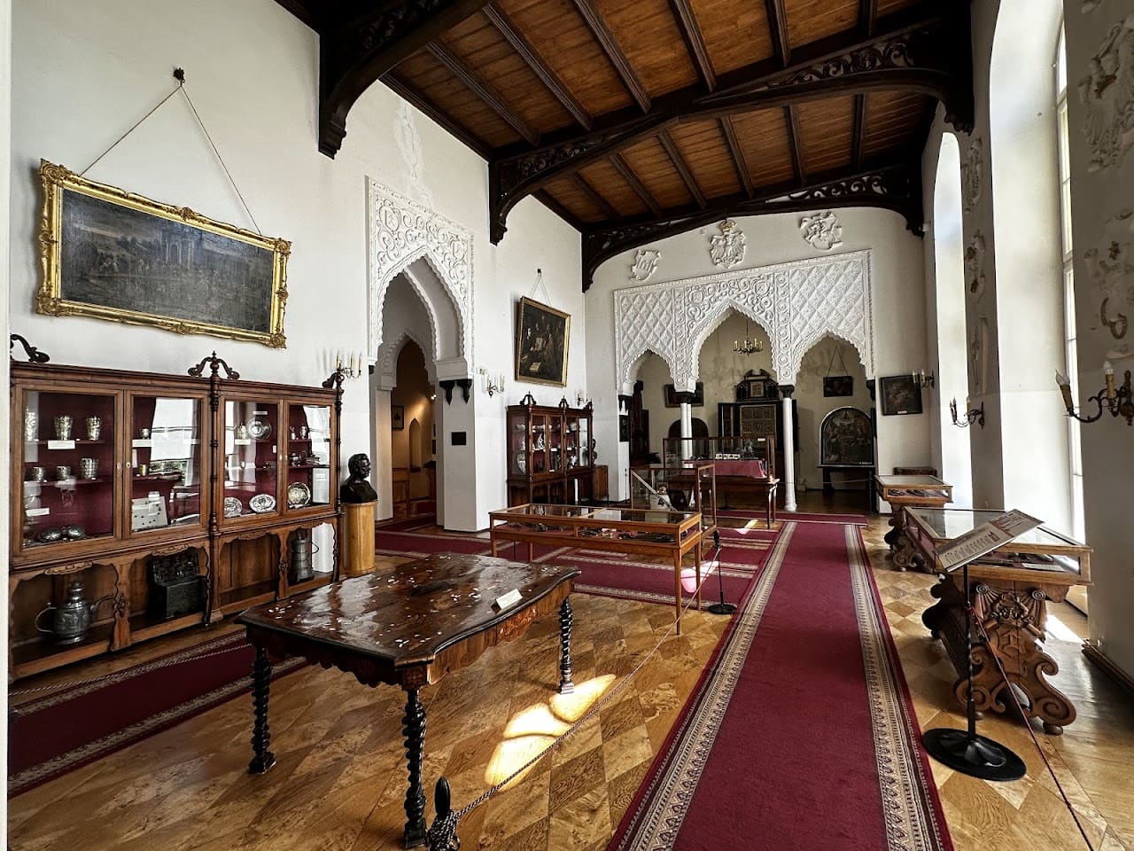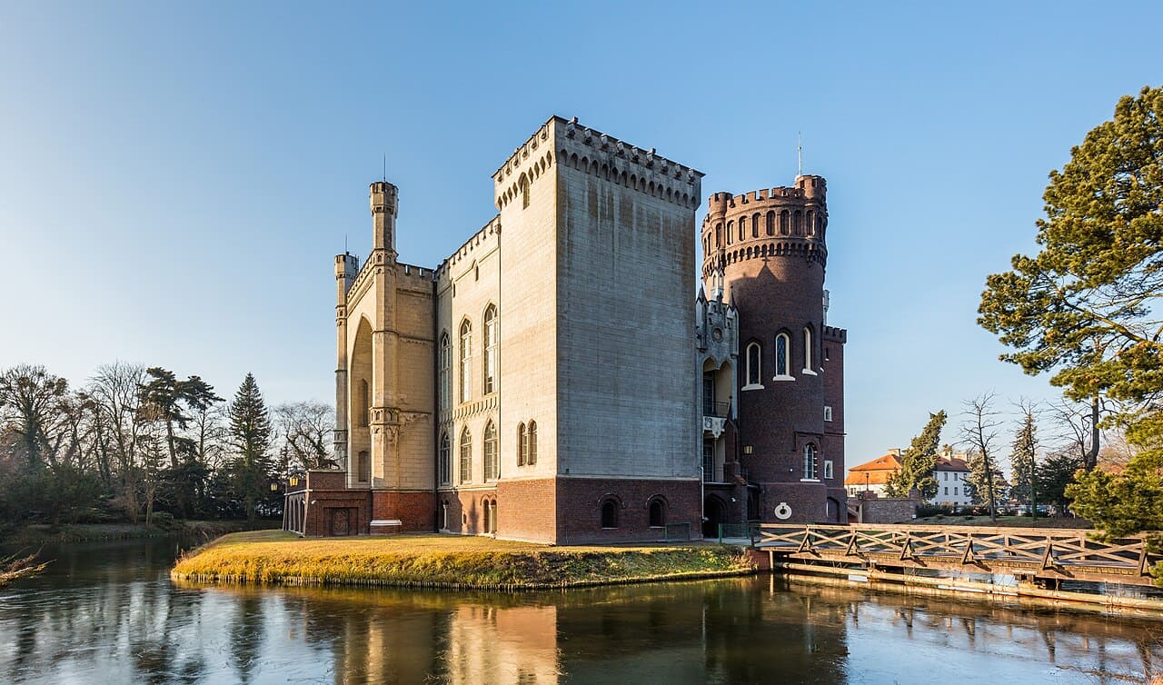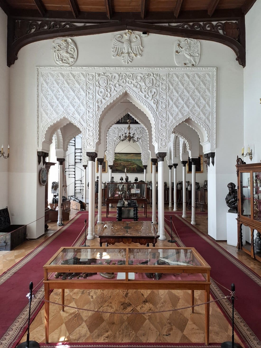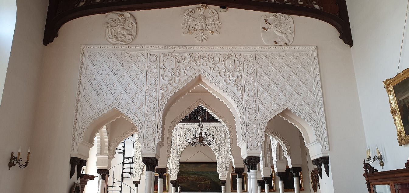 Entre sus espacios interiores más llamativos se encuentra la Sala de los Moros, cuya decoración recuerda a la Alhambra, mostrando la fascinación del siglo XIX por las culturas lejanas. El conjunto arquitectónico combina elementos góticos y neogóticos, convirtiéndose en un ejemplo destacado del historicismo europeo, donde el pasado medieval se reinterpretaba con sensibilidad romántica.