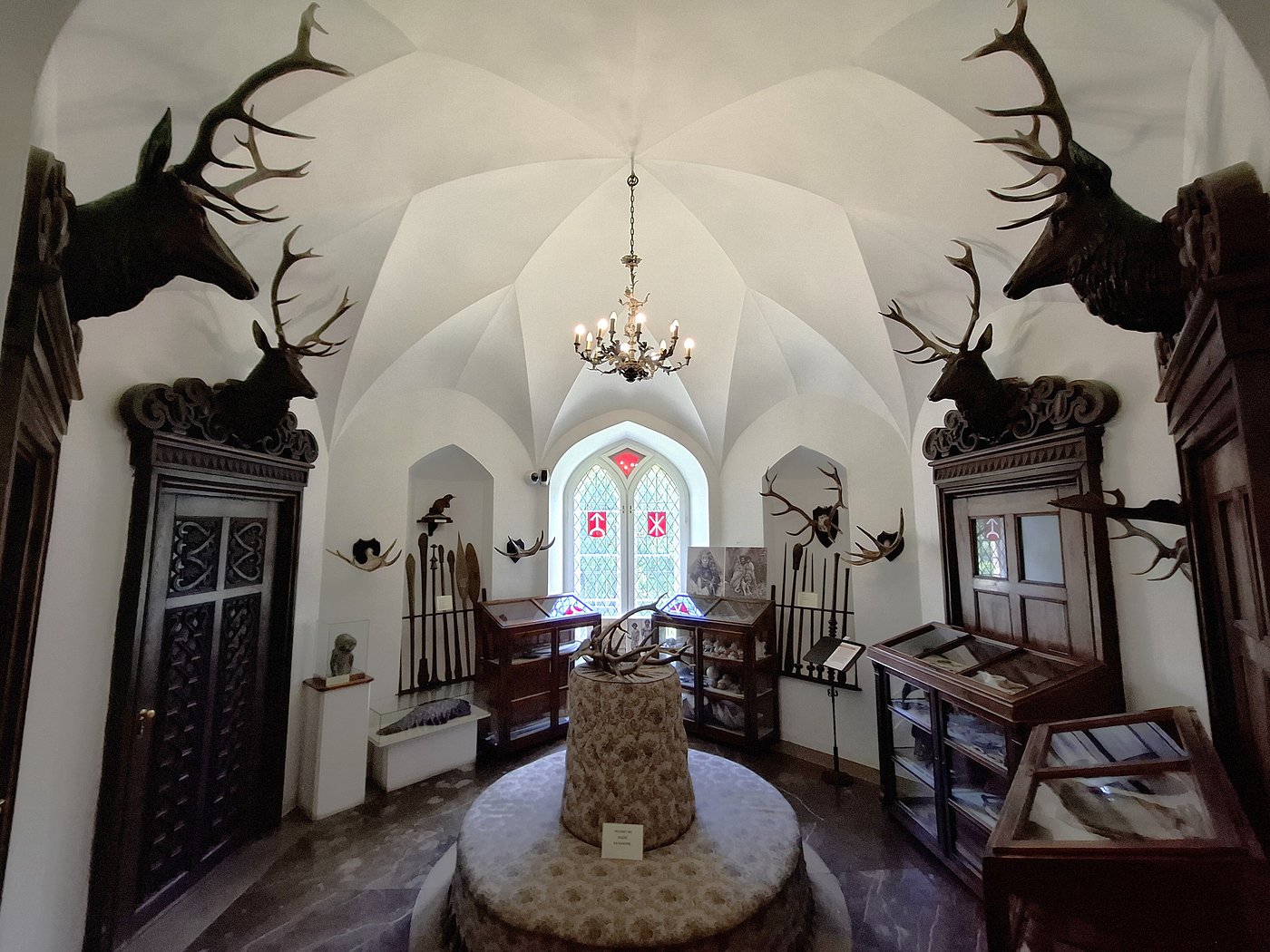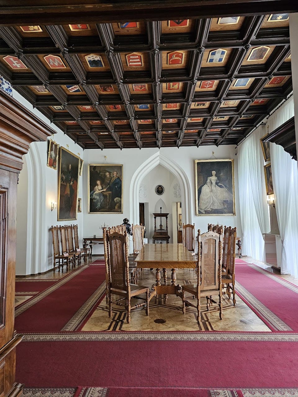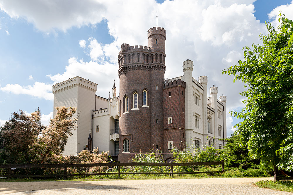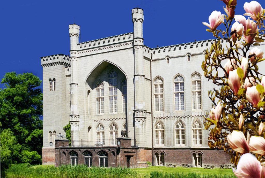Entre sus espacios interiores más llamativos se encuentra la Sala de los Moros, cuya decoración recuerda a la Alhambra, mostrando la fascinación del siglo XIX por las culturas lejanas. El conjunto arquitectónico combina elementos góticos y neogóticos, convirtiéndose en un ejemplo destacado del historicismo europeo, donde el pasado medieval se reinterpretaba con sensibilidad romántica.
