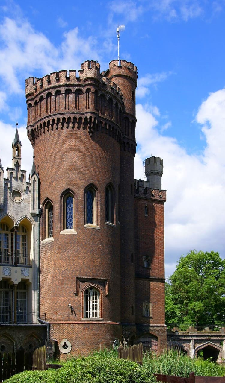 El castillo destaca por su singular arquitectura, donde lo gótico se mezcla con elementos románticos e incluso orientales. Durante la реконstrucción del siglo XIX, se incorporaron detalles únicos como el llamado “arco indio”, que aporta un aire exótico poco común en la arquitectura polaca.