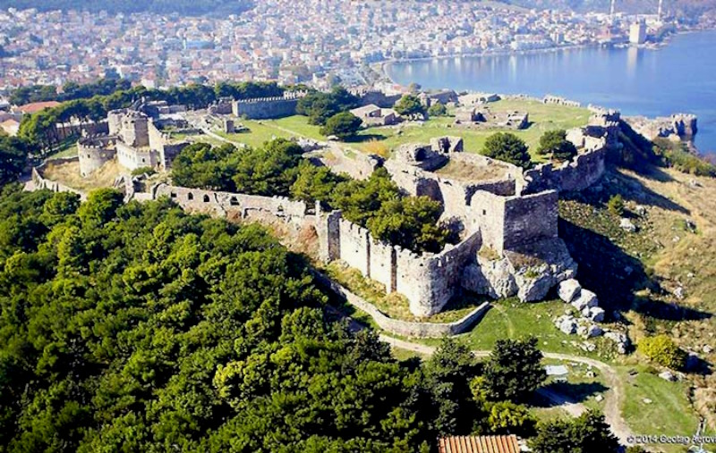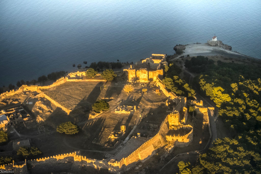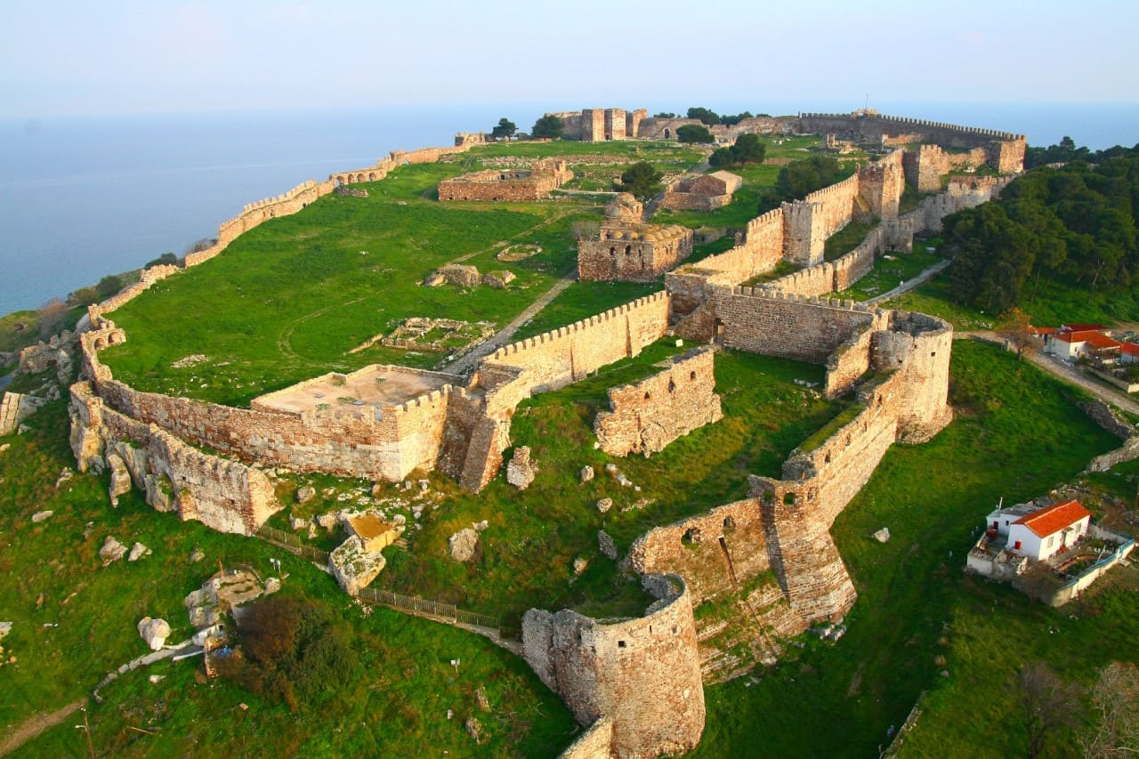 El castillo del siglo VI pudo haber sido construido en la cima de una fortaleza ya existente. A finales de la Edad Media, el castillo fue la residencia de Francisco I Gattilusio y sus sucesores, especialmente la torre que hoy se conoce como la Torre de la Reina. También hay fuerte evidencia de que la acrópolis original en el sitio puede haber incluido el santuario de Deméter, Kore y Cibeles.