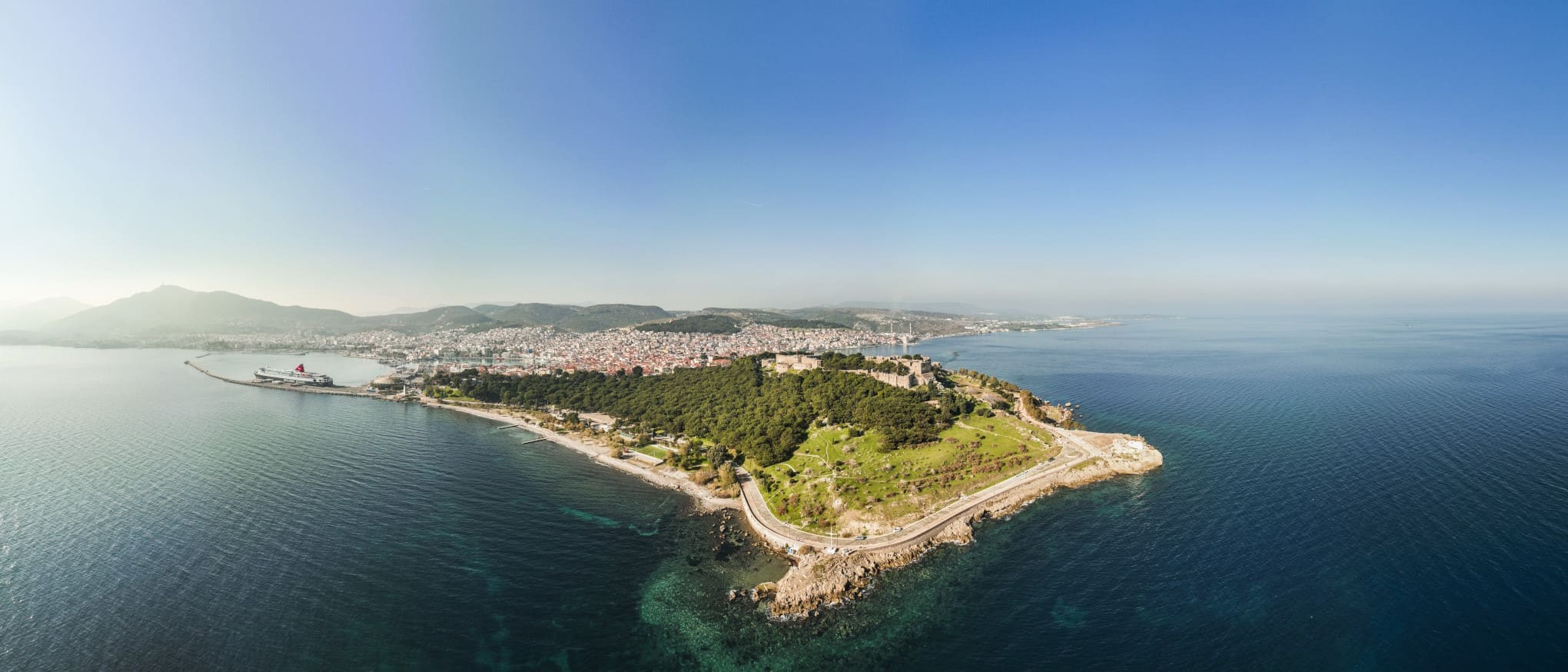 El emplazamiento ocupa una península que en la Antigüedad funcionaba como acrópolis natural, reforzando su valor militar y defensivo.