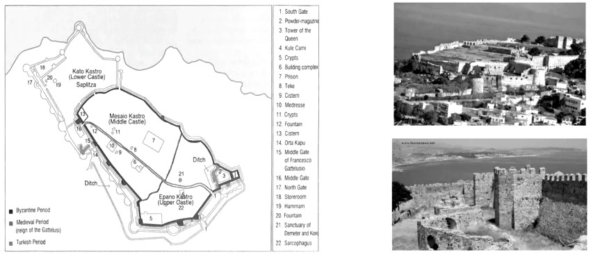 En 1355, la isla de Lesbos pasó a manos de la familia genovesa Gattilusio, que transformó profundamente el castillo:
