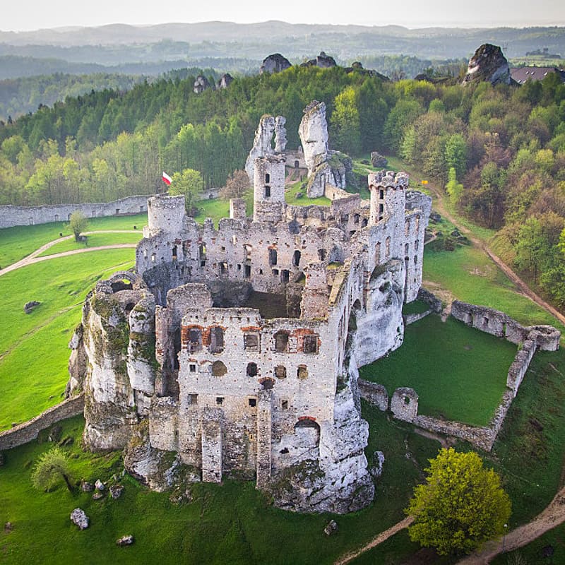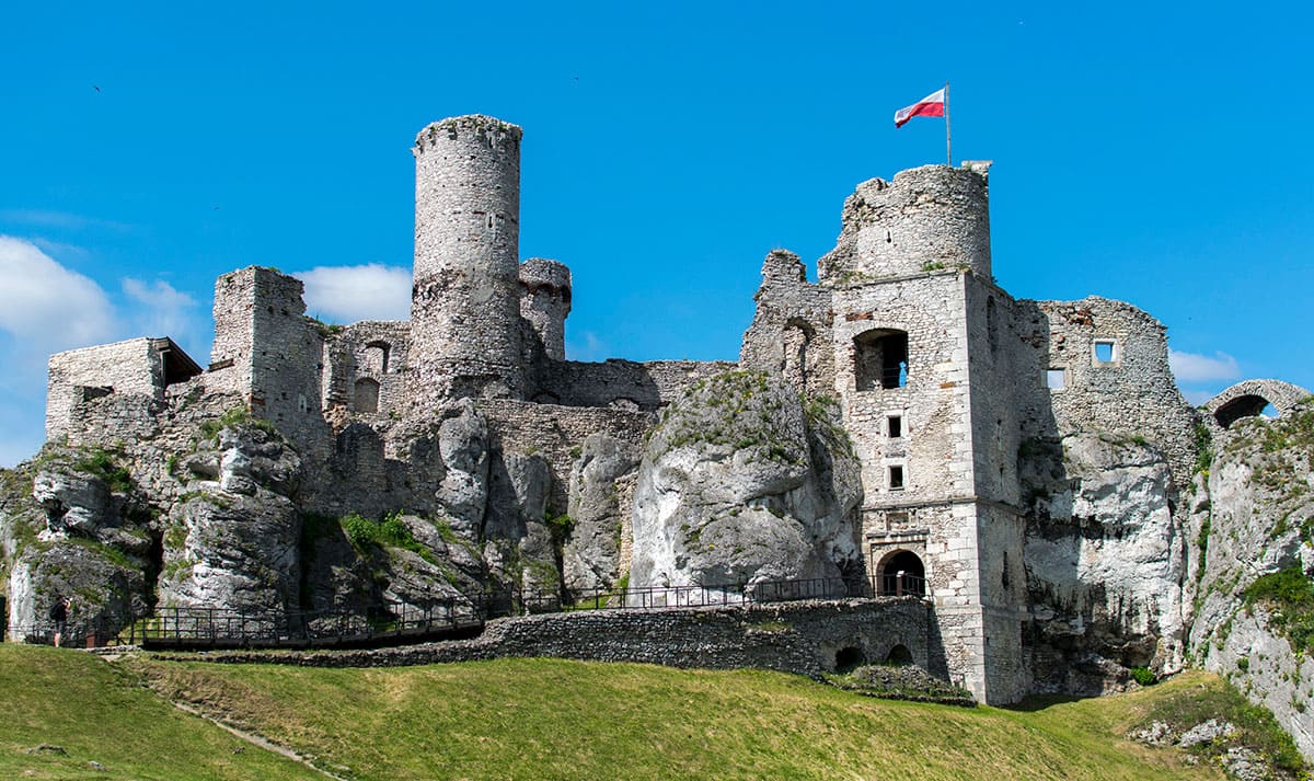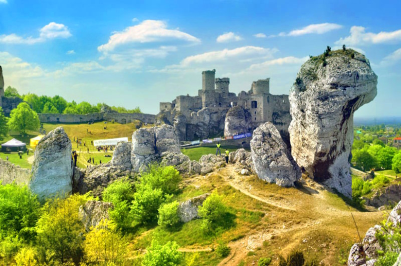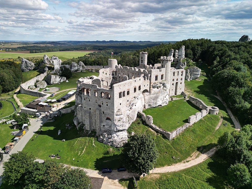 Es uno de los castillos más impresionantes de la Ruta de los Nidos de Águilas, que conecta fortalezas medievales entre Cracovia y Częstochowa.