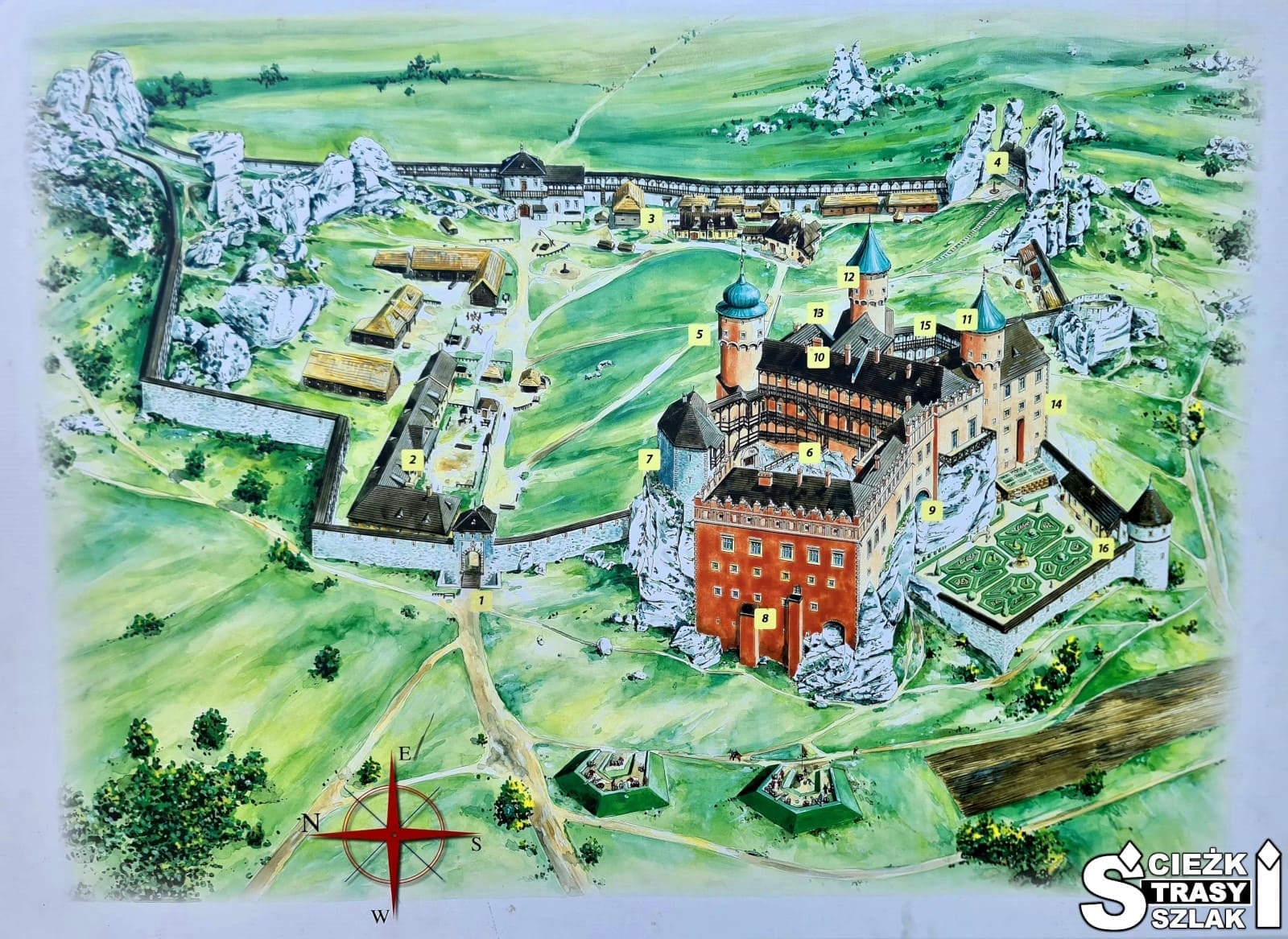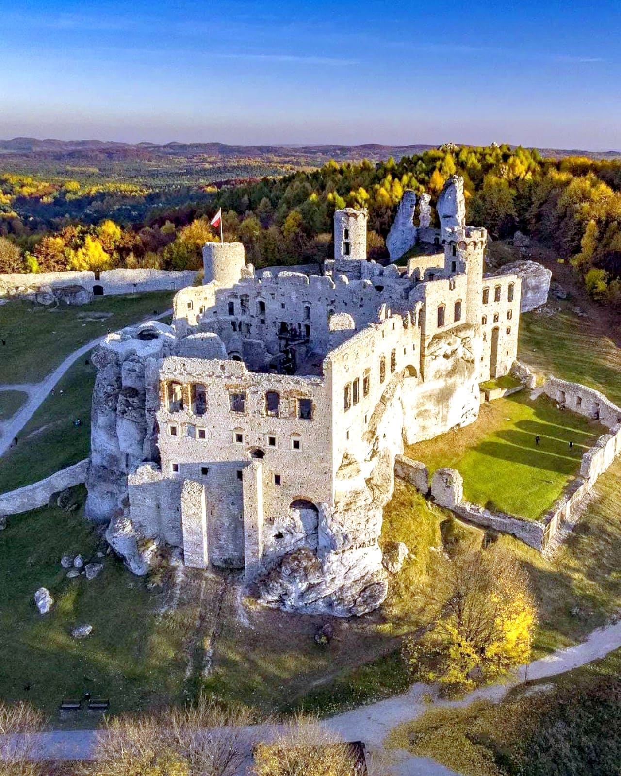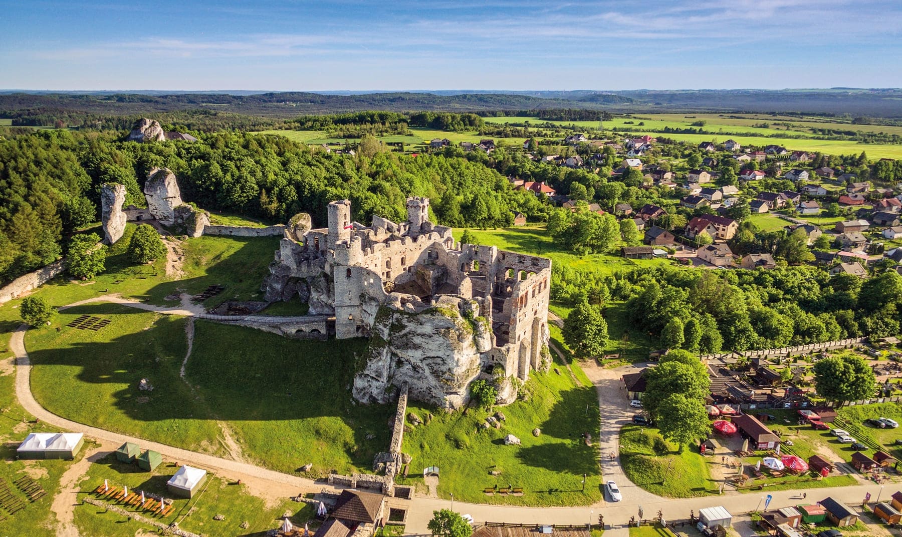 Es uno de los castillos más impresionantes de la Ruta de los Nidos de Águilas, que conecta fortalezas medievales entre Cracovia y Częstochowa.