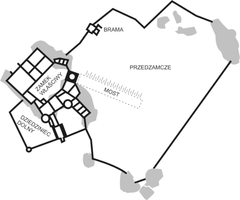 El castillo ocupa una superficie de más de 3,5 hectáreas y un volumen superior a 32.000 m³, siendo una de las ruinas más grandes del sur de Polonia.