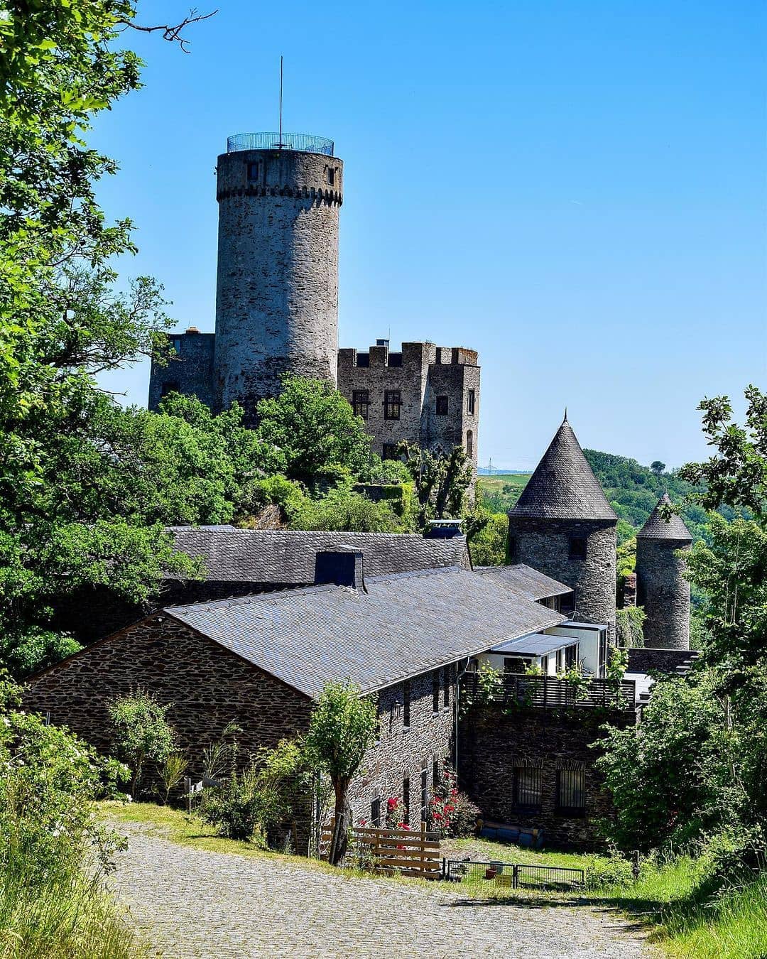 El Castillo de Pyrmont se encuentra en Alemania, más concretamente en el municipio de Roes, en el distrito de Cochem-Zell, sobre un imponente peñasco de pizarra que domina la caída del río Elzbach. Su posición elevada y escarpada lo convierte en un lugar de gran belleza y valor estratégico.