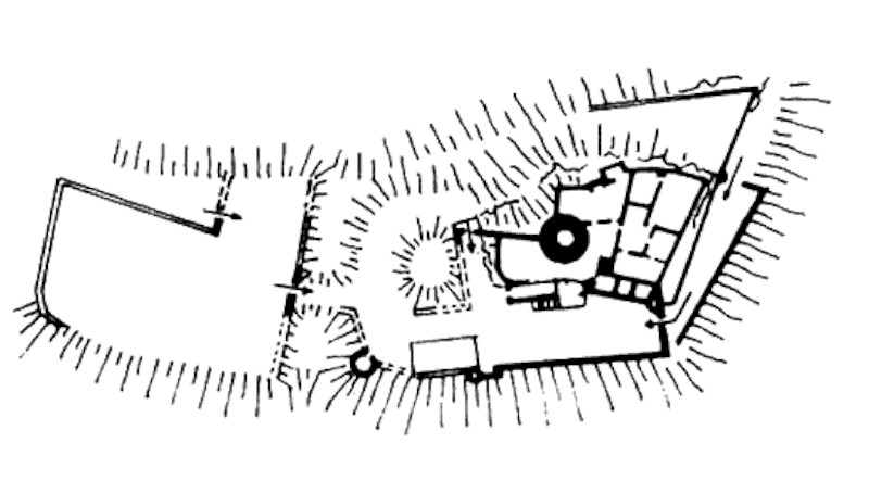 El castillo fue originalmente erigido a finales del siglo XII, en terreno perteneciente a la región de los condes palatinos. Su diseño responde a la arquitectura típica de la época de los Hohenstaufen, con una planta irregular y muros robustos. Destaca un torreón redondo (bergfried) de unos 24,5 metros de altura, que servía como punto de vigilancia y defensa. También hay restos de un pozo muy profundo, de decenas de metros, y edificios como el palacio (palas) y una cocina unida a la capilla.