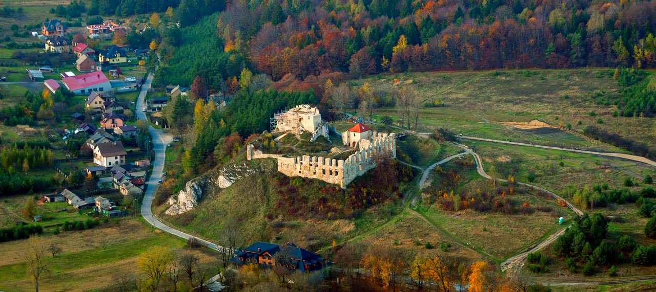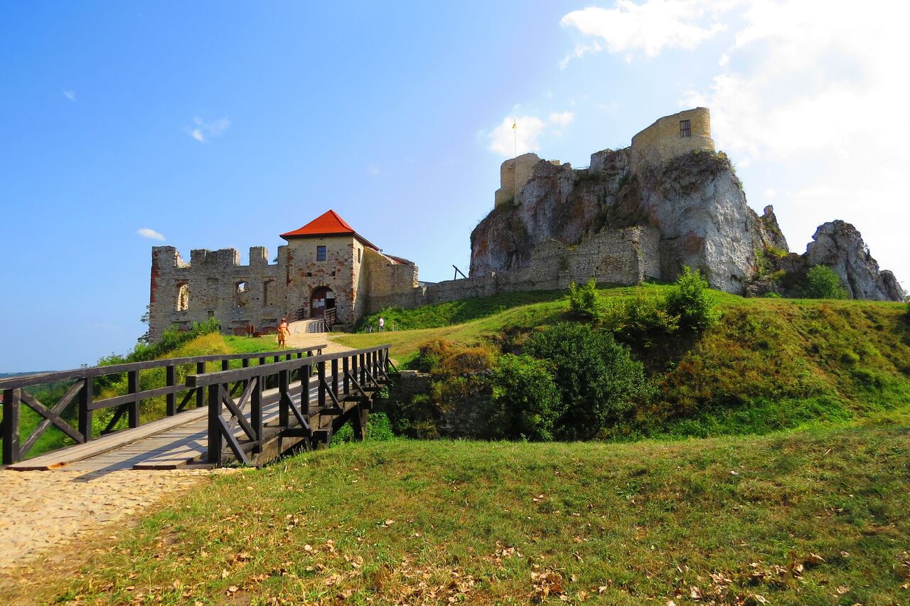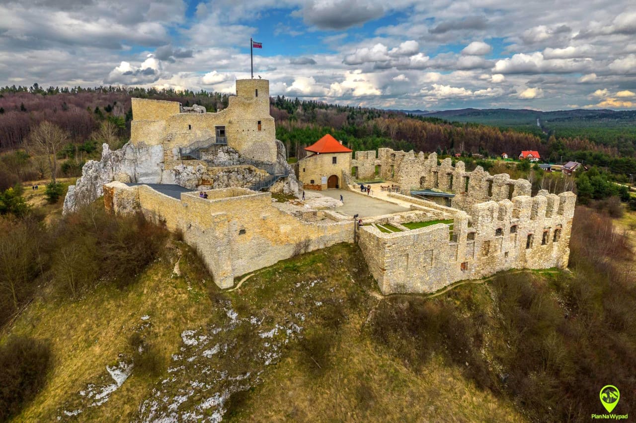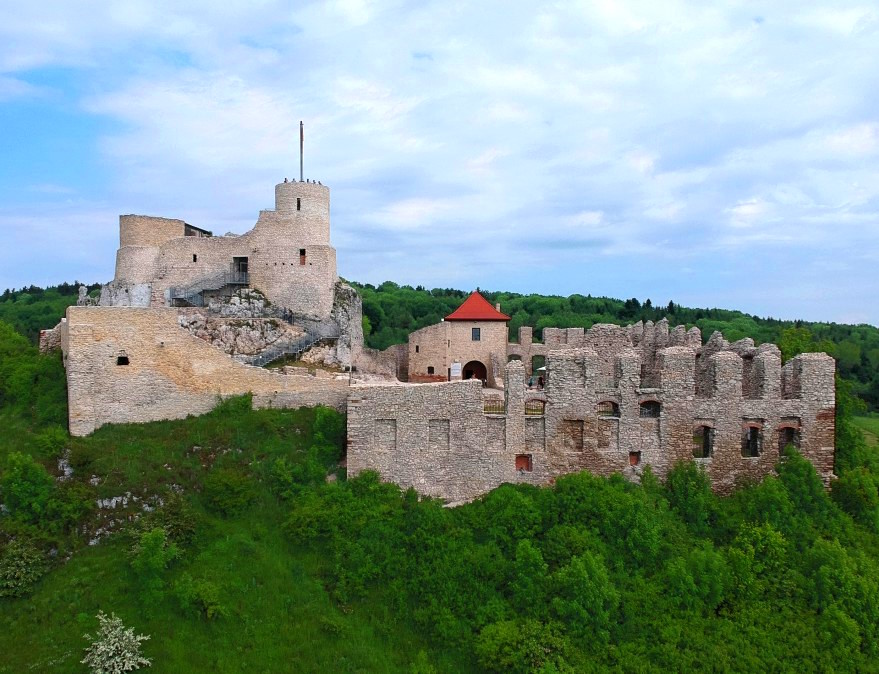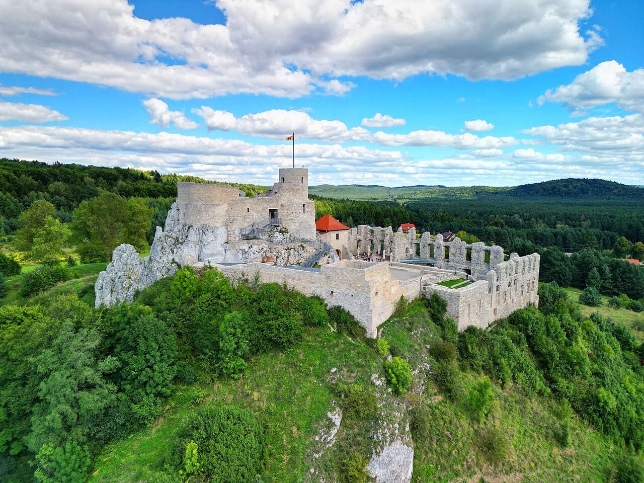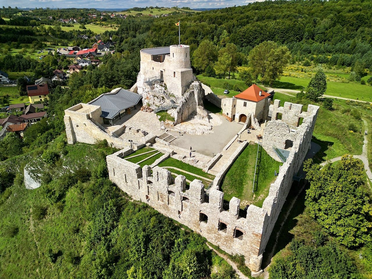 Castillo de Rabsztyn: ruinas históricas de un castillo en el pueblo de Rabsztyn, en la provincia de Małopolska, en el distrito de Olkusz; construido en la colina Rabsztyński (427,5 m sobre el nivel del mar) en la meseta de Cracovia-Częstochowa, formaba parte de los Nidos de Águila.