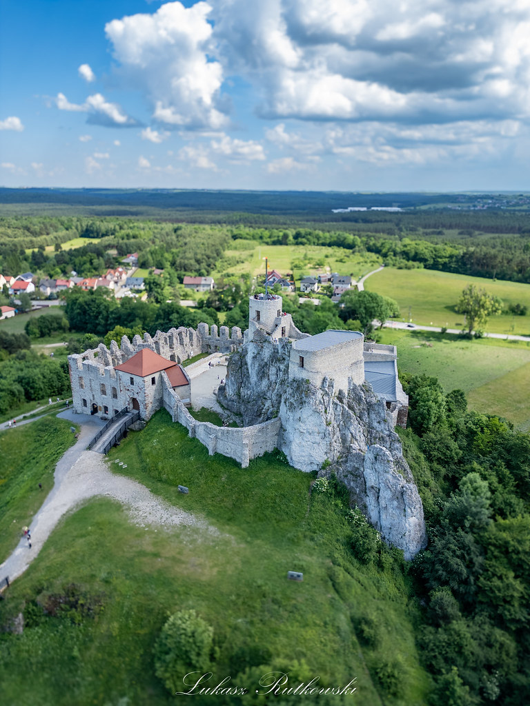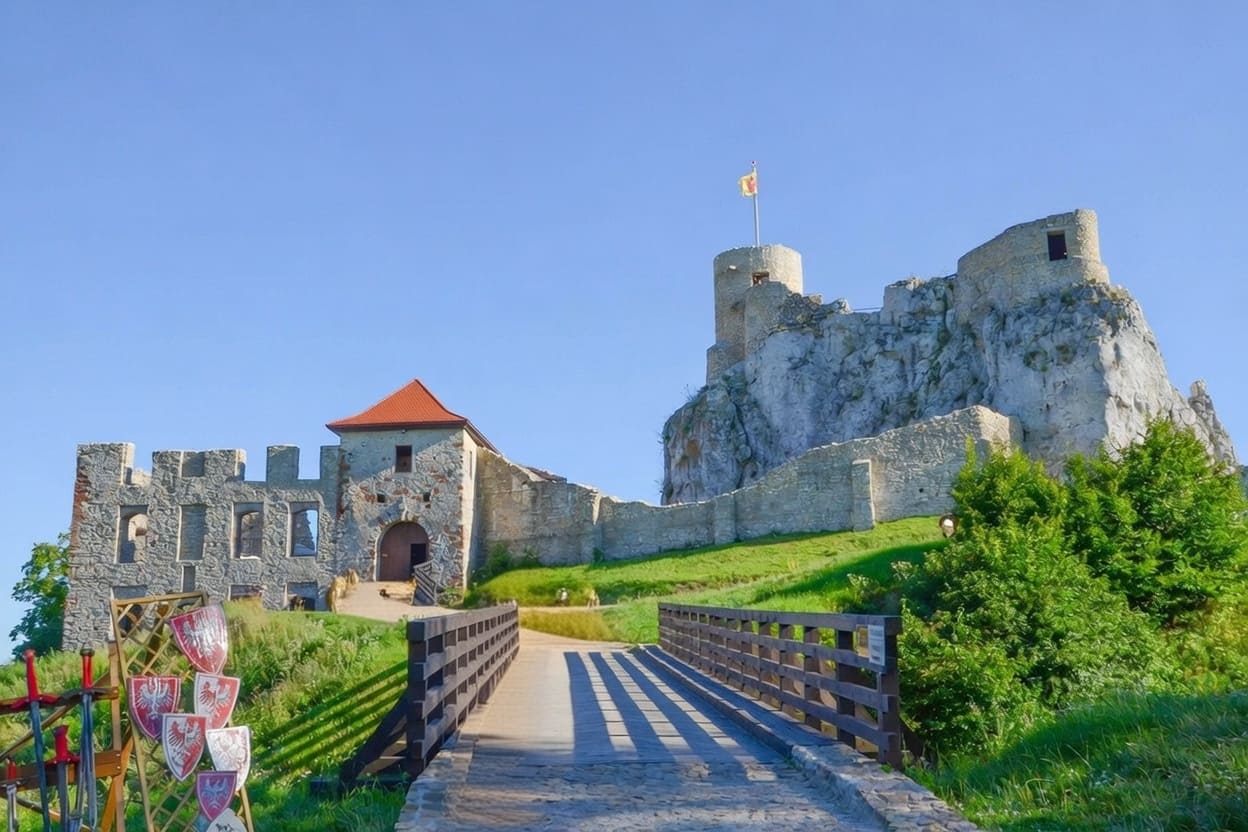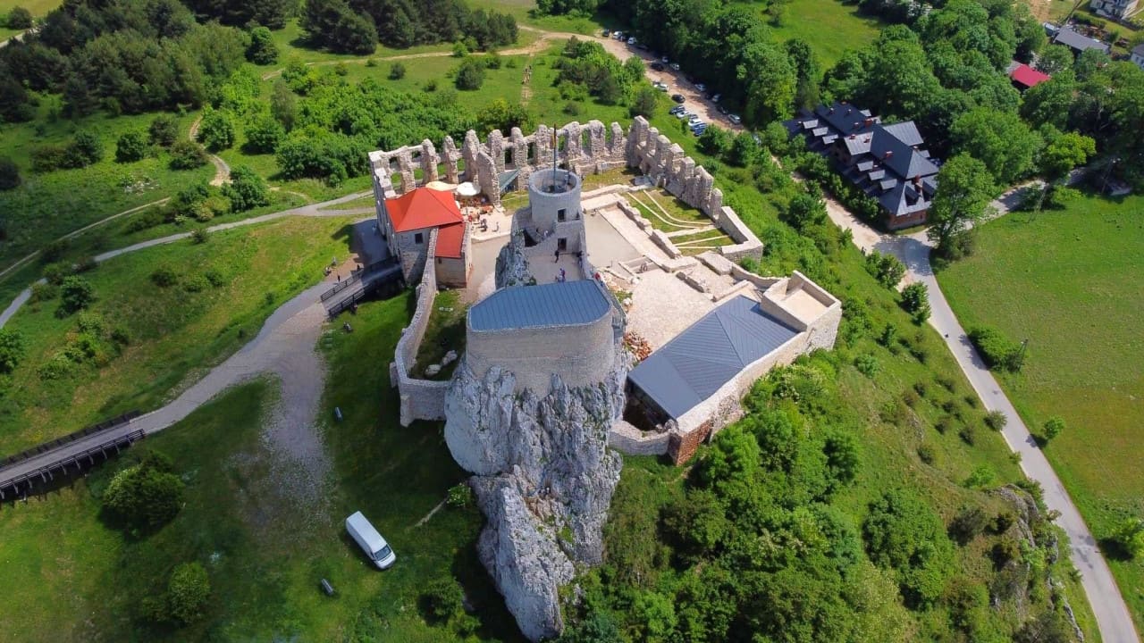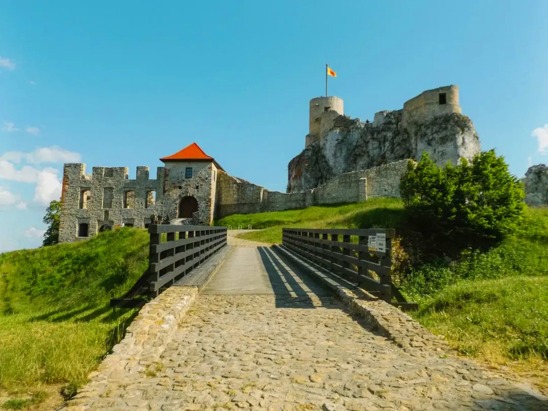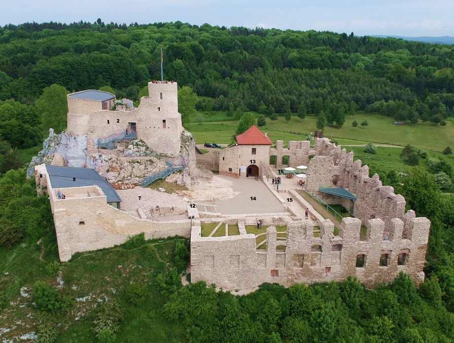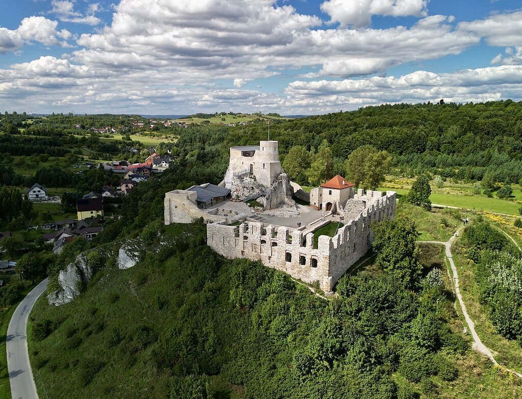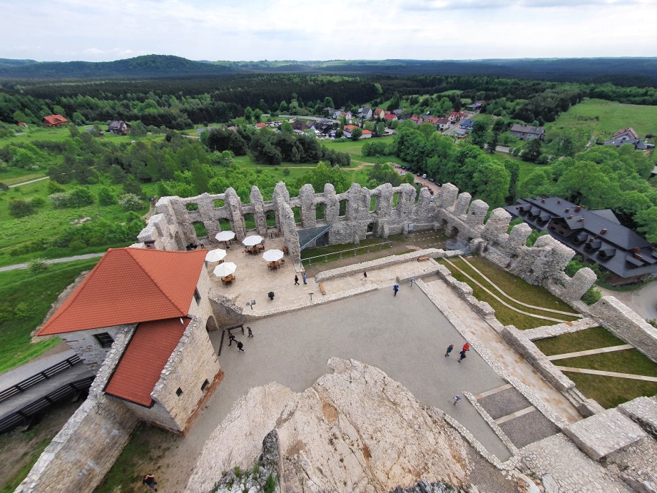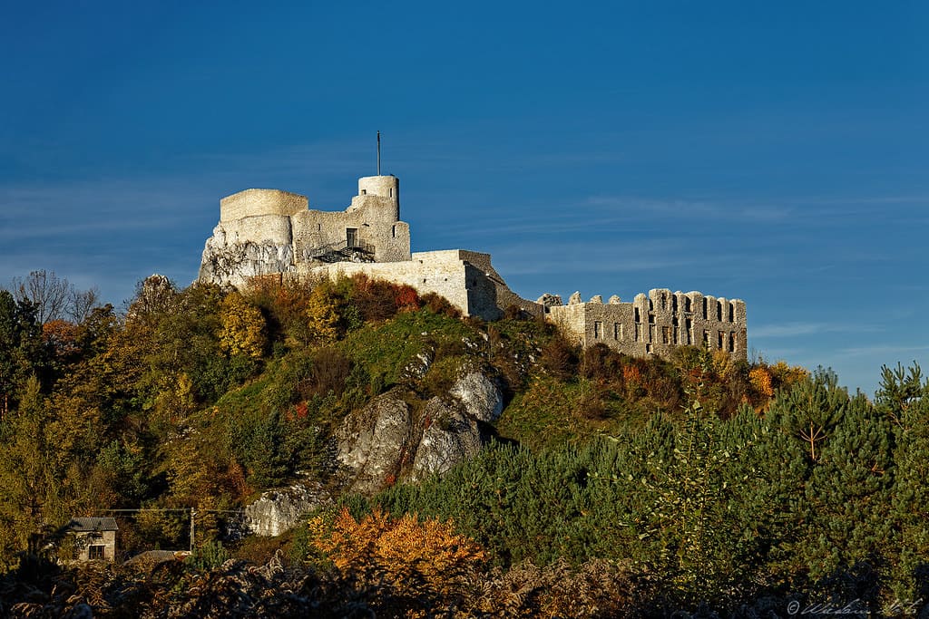 Castillo de Rabsztyn: ruinas históricas de un castillo en el pueblo de Rabsztyn, en la provincia de Małopolska, en el distrito de Olkusz; construido en la colina Rabsztyński (427,5 m sobre el nivel del mar) en la meseta de Cracovia-Częstochowa, formaba parte de los Nidos de Águila.