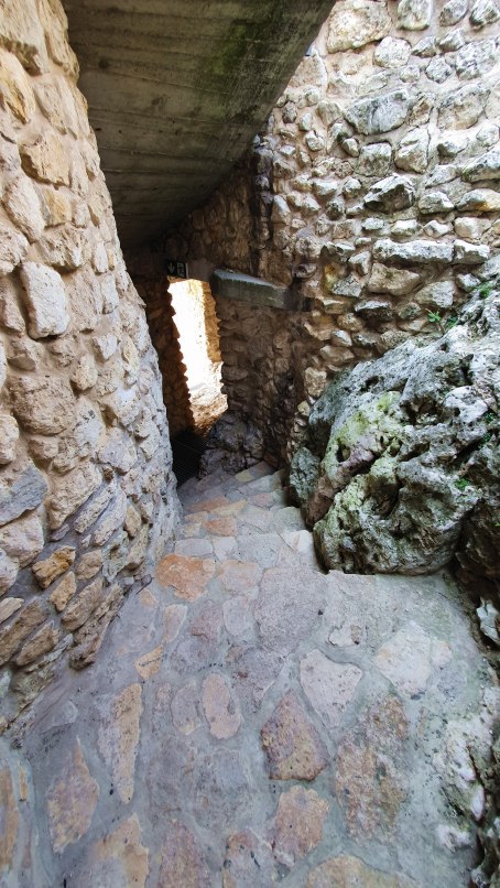El Castillo Medio, que albergaba edificaciones residenciales, patios interiores y una profunda cisterna excavada en la roca.