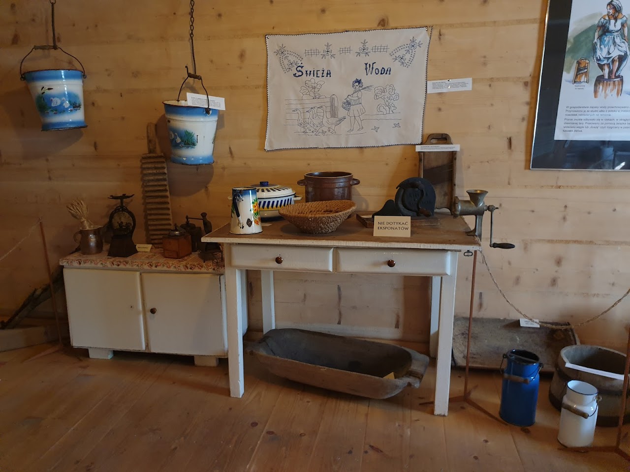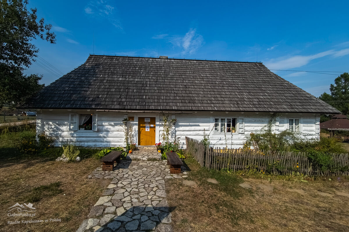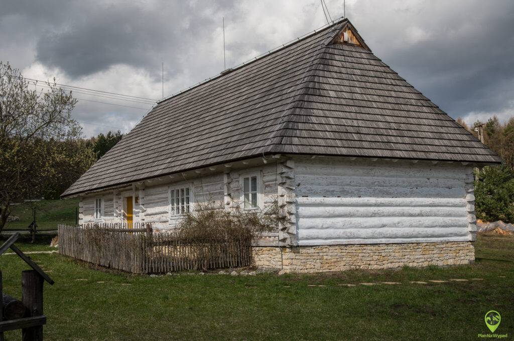 La casa fue construida en 1862 y constituye un ejemplo representativo de la arquitectura rural de madera del siglo XIX en la región de Pequeña Polonia. Es una edificación sencilla, de planta rectangular, levantada con troncos ensamblados y cubierta a dos aguas. Actualmente forma parte del entorno histórico del castillo y del recorrido turístico del conjunto.