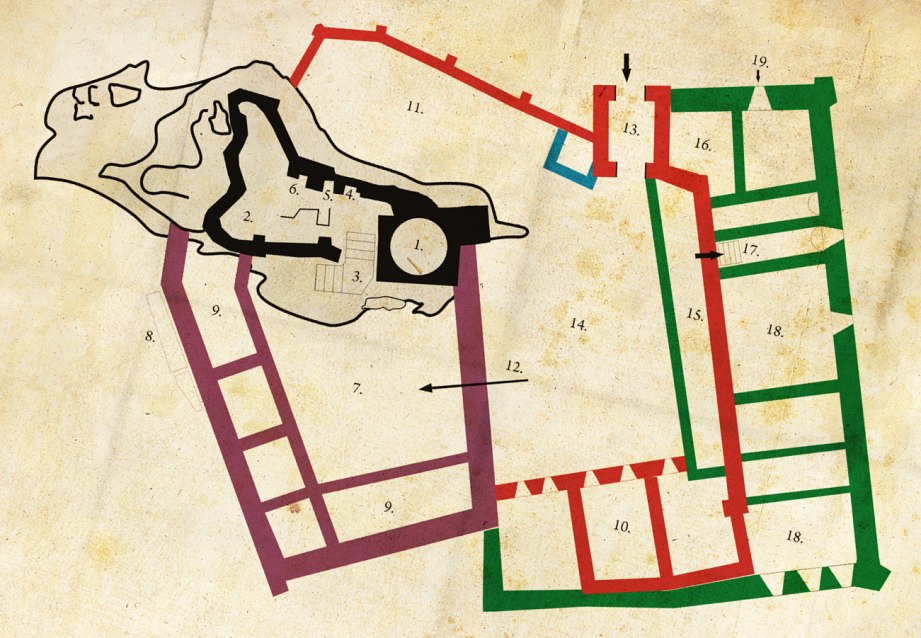 Con el paso del tiempo, el conjunto adquirió una estructura compleja dividida en tres partes: