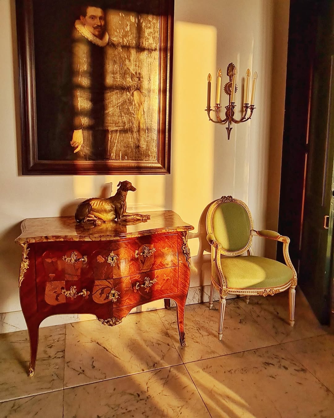 Interior: En 1908 y 1991, los propietarios del castillo permitieron a un fotógrafo tomar fotografías del interior. El vestíbulo alberga numerosos retratos familiares y un salón blanco de estilo rococó. El comedor está decorado con pinturas de Herman ten Oever que representan escenas de la mitología griega. El salón central contiene retratos y el escudo de armas de la familia Rechteren.