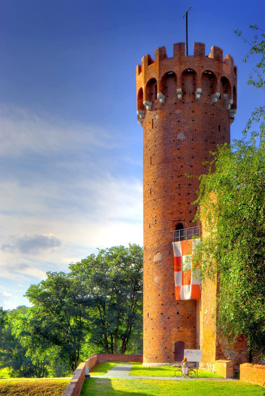 Descripción:El castillo teutónico de Świecie (en polaco: Zamek krzyżacki w Świeciu) es una ruina parcial situada en Świecie. La ruina parcial se conserva en perfecto estado desde la orilla del río Vístula y Wda, junto con una torre circular coronada con merlones. El castillo forma parte de un complejo construido por los caballeros teutónicos en estilo arquitectónico gótico. El castillo se construyó en el emplazamiento de un gord de los duques de Pomerania, situado junto al castillo. Antiguamente, el castillo tenía cuatro torres en las esquinas, de las cuales solo se conserva una.