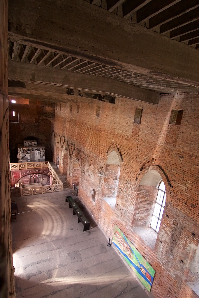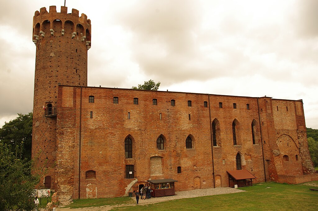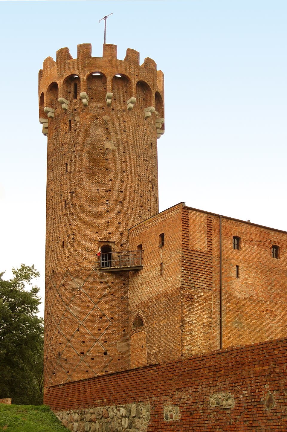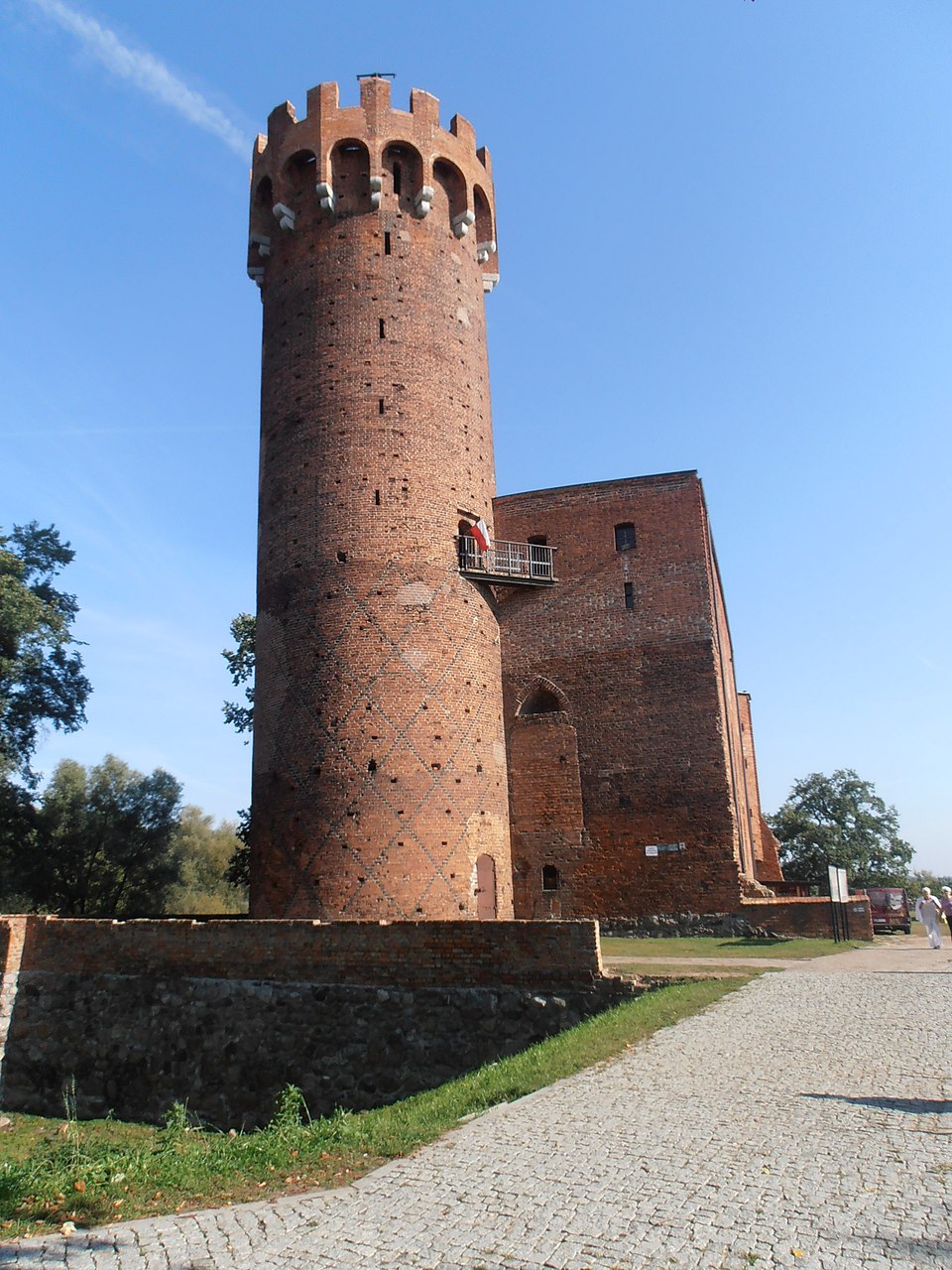 El castillo está rodeado por una muralla defensiva y un foso. En 1410, el castillo fue saqueado por las fuerzas polacas, que lo destruyeron por completo. El castillo pasó a ser propiedad del Reino de Polonia tras la Segunda Paz de Thorn en 1466. En el siglo XVI, el castellano Konopacki reconstruyó el castillo en estilo renacentista. El castillo quedó devastado tras el Diluvio y desde entonces no se ha reconstruido. El castillo quedó aún más devastado después de que las fuerzas prusianas lo utilizaran como campo de entrenamiento. Actualmente, el castillo alberga un museo, y la torre y el castillo han sido renovados.