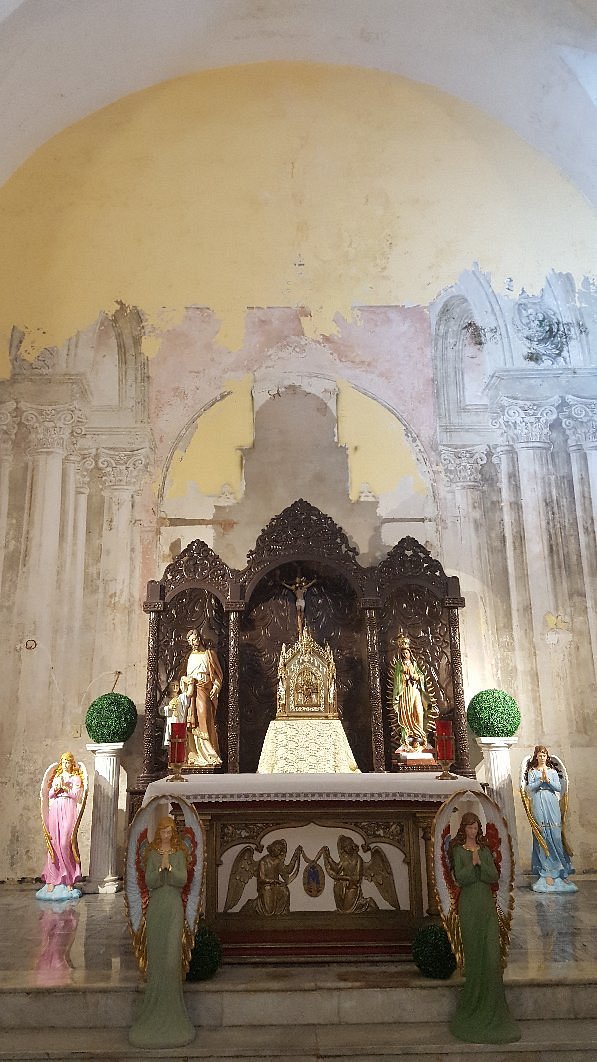 También contiene una imagen de Nuestra Señora de Guadalupe con el título de «Patrona de México y Emperatriz de las Américas». El Altar mayor lo preside un Cristo crucificado y en los laterales están las imágenes de San Juan Bautista y la Virgen de los Remedios.