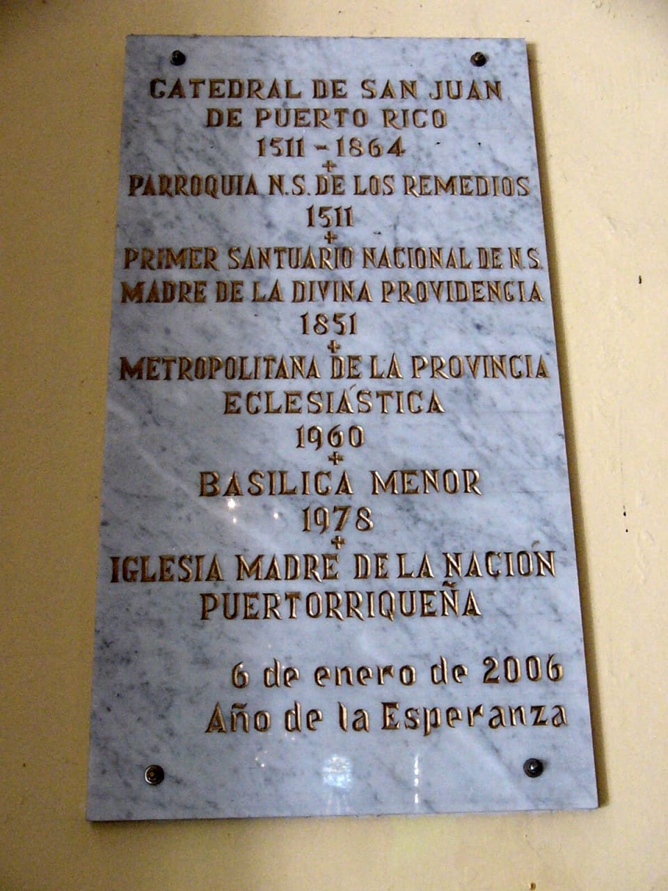 La Catedral también es el Santuario Nacional de Nuestra Señora de la Divina Providencia, patrona de Puerto Rico. Es la iglesia más antigua del país, y la segunda más antigua de América, después de la catedral de Santa María la Menor en Santo Domingo.