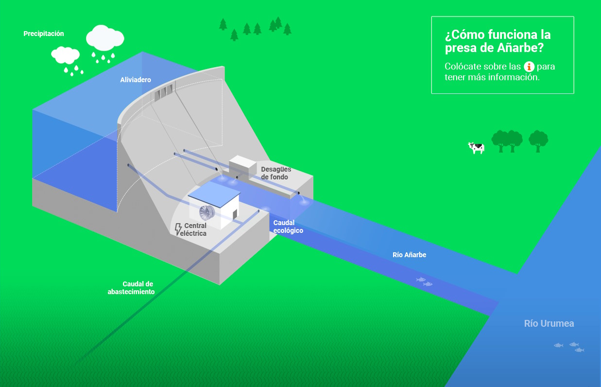 Además de su función hidráulica, el embalse contribuye al mantenimiento de caudales ecológicos y a la regulación del río Urumea.