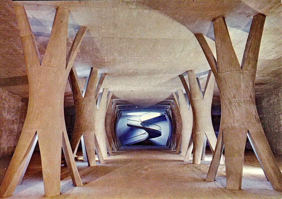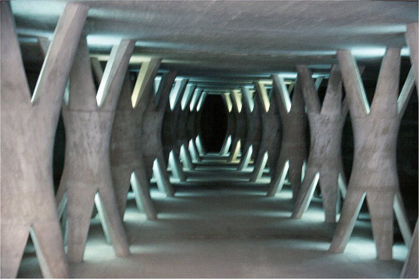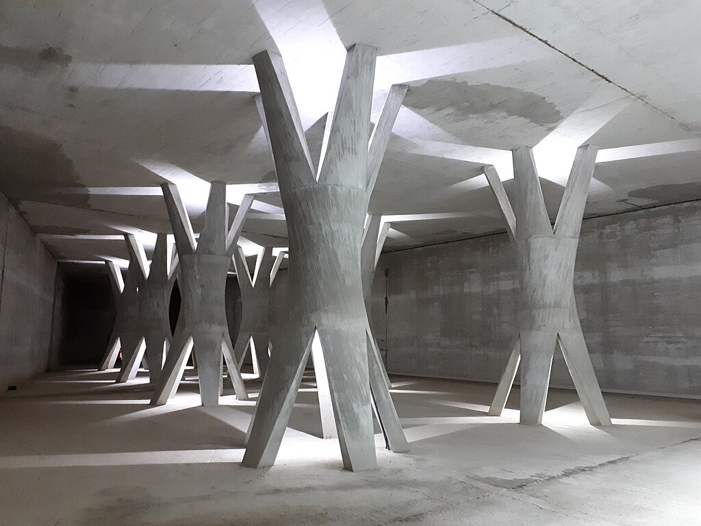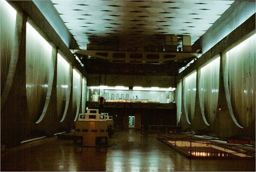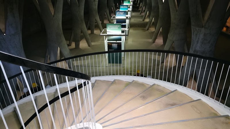 La estructura incluye una singular sala de columnas, un espacio subterráneo de gran belleza técnica y arquitectónica donde se ubican las galerías de control y drenaje. Este recinto, excavado en la roca, destaca por su aspecto monumental y por simbolizar la unión entre ingeniería y arte en las grandes obras hidráulicas de su tiempo.