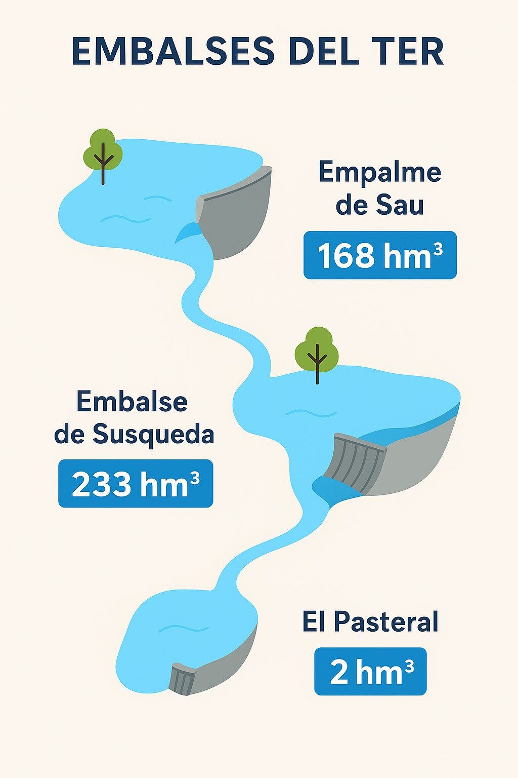 El sistema hidroeléctrico del Ter está compuesto por los embalses de Sau, Susqueda y el Pasteral, que trabajan de forma escalonada: