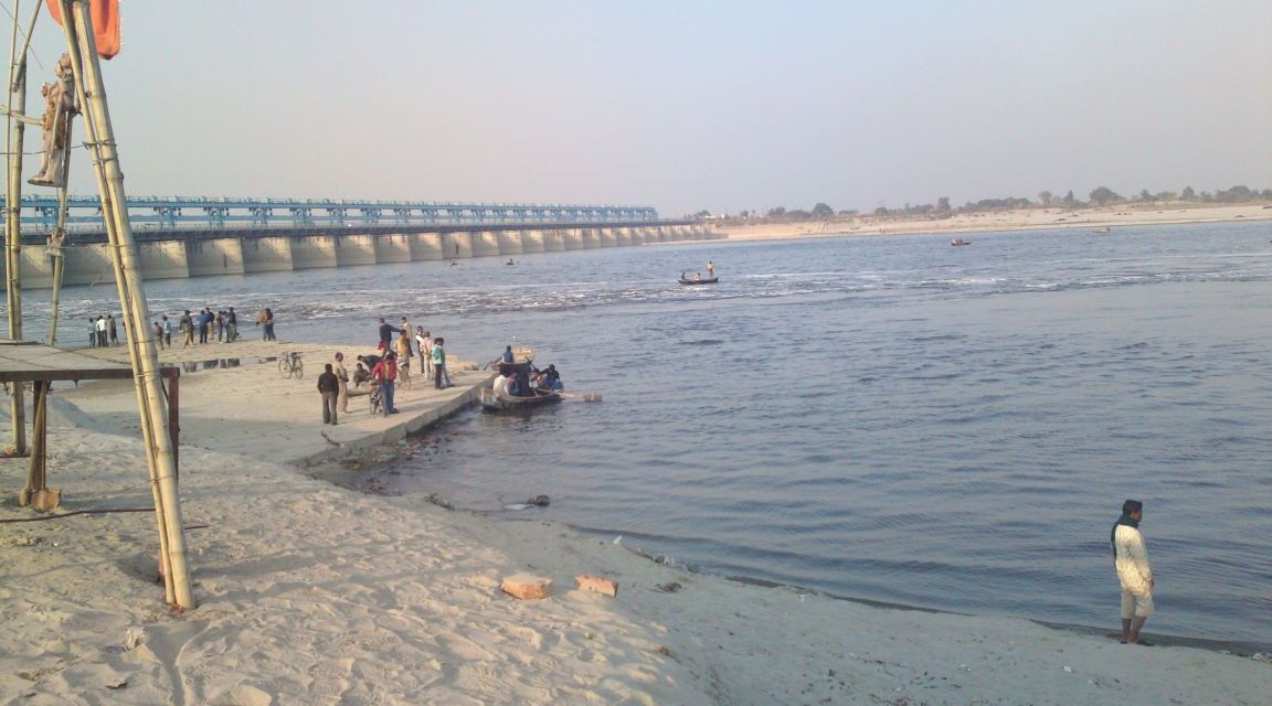 Traza una curva de 800 kilómetros y visita la ciudad de Kanpur antes de unirse con el río Yamuna, a la altura de la ciudad de Allahabad. Este punto es conocido como el Sangam de Allahabad. El Sangam es un lugar sagrado en el Hinduismo. De acuerdo con textos hindúes antiguos, un tercer río, el Sarasvati, se unía en este punto con los otros dos.