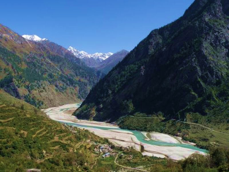 Curso. La fuente del Ganges está en los Himalayas, en la zona geográfica del pequeño estado de Uttarakhand, en el norte de la India. Está formado a su inicio por muchas corrientes y confluencias de fuentes, aunque los riachuelos más importantes son el Alaknanda, el Nandakini, el Pindar, el Mandakini y el Bhagirathi. Este último es la verdadera fuente: nace a los pies del glaciar Gangotri, a una altura de 3.892 metros.